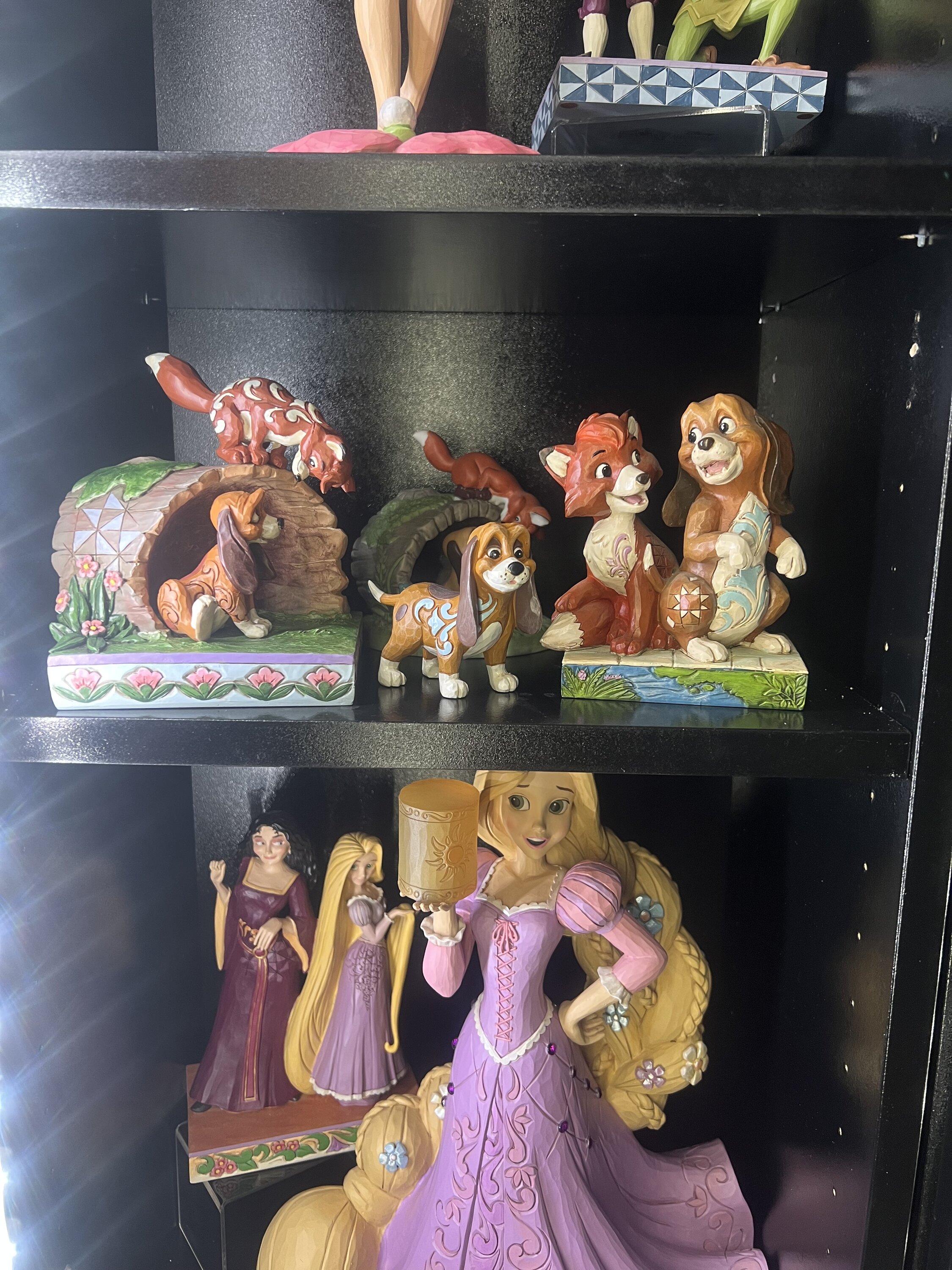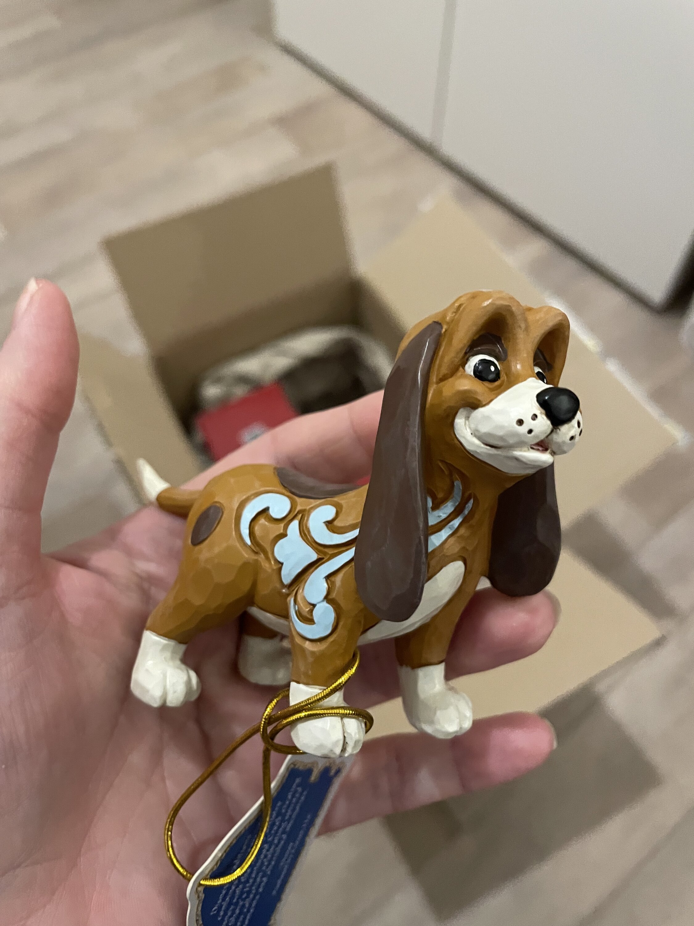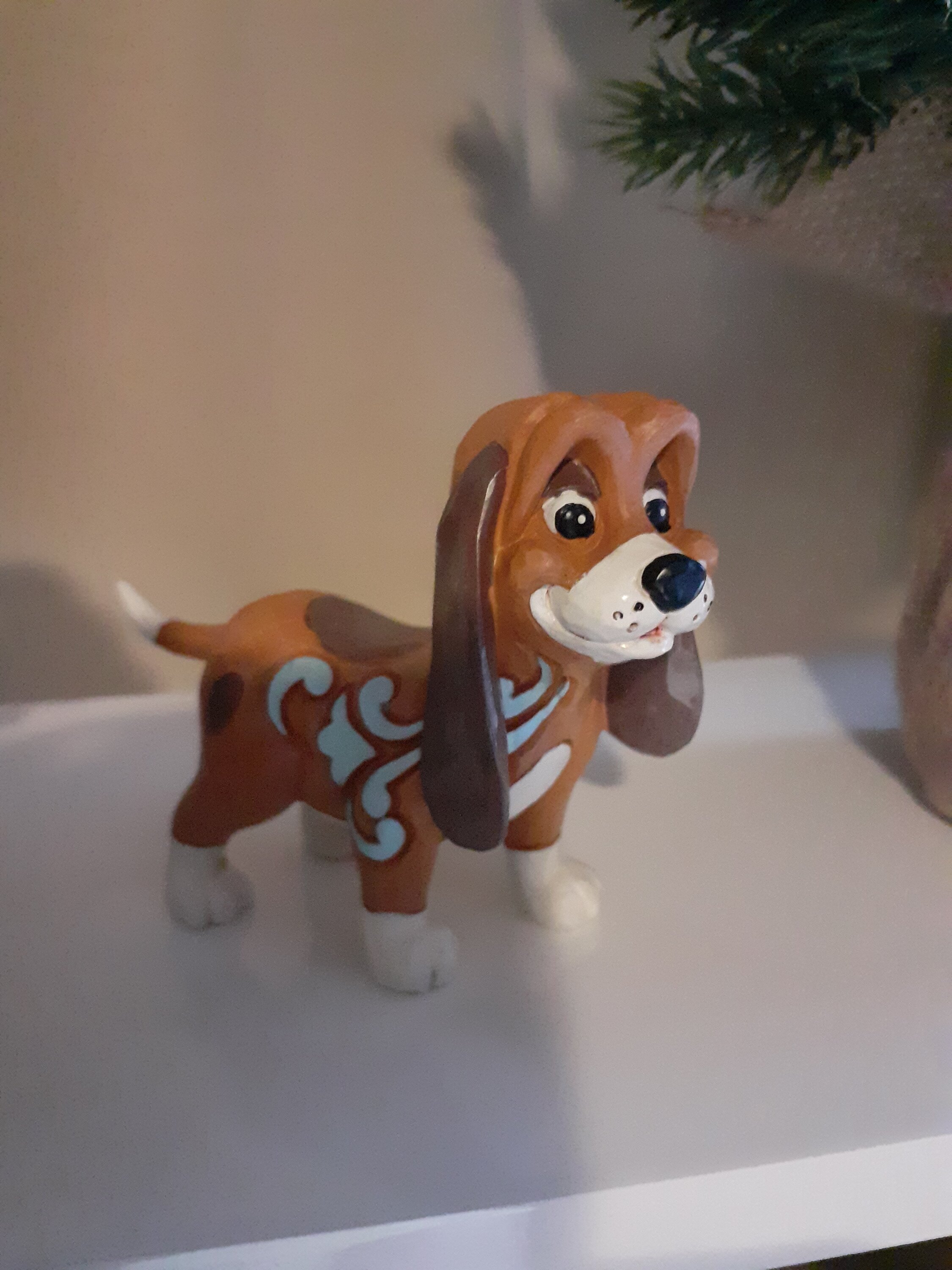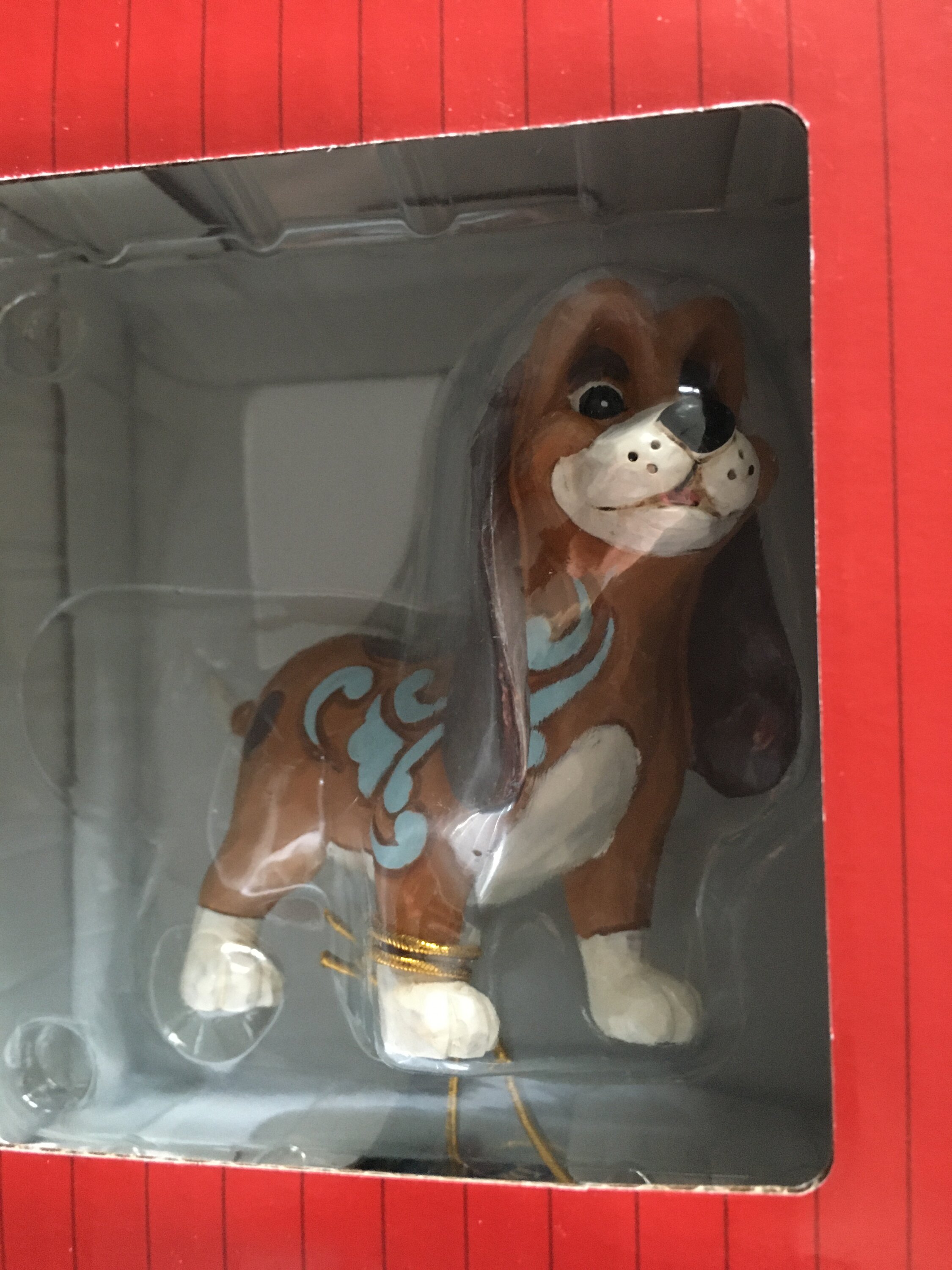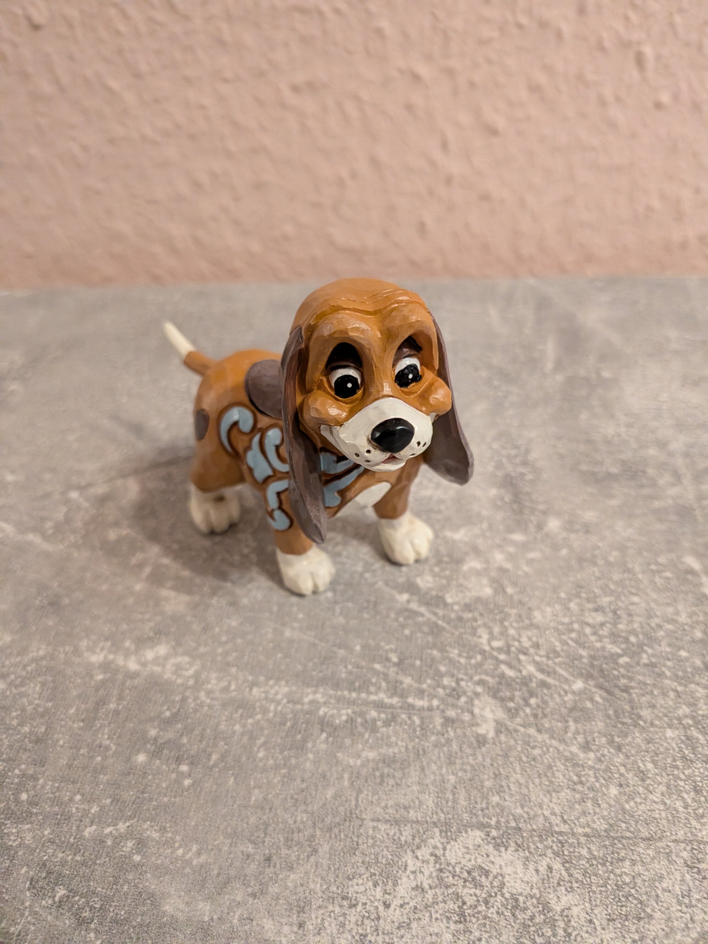 Cette adorable miniature de Jim Shore représente Rouky, le chien, avec ses motifs complexes et son expression sincère. Il est probablement à la recherche de son ami, le Renard, prêt pour leur prochaine aventure dans les bois.