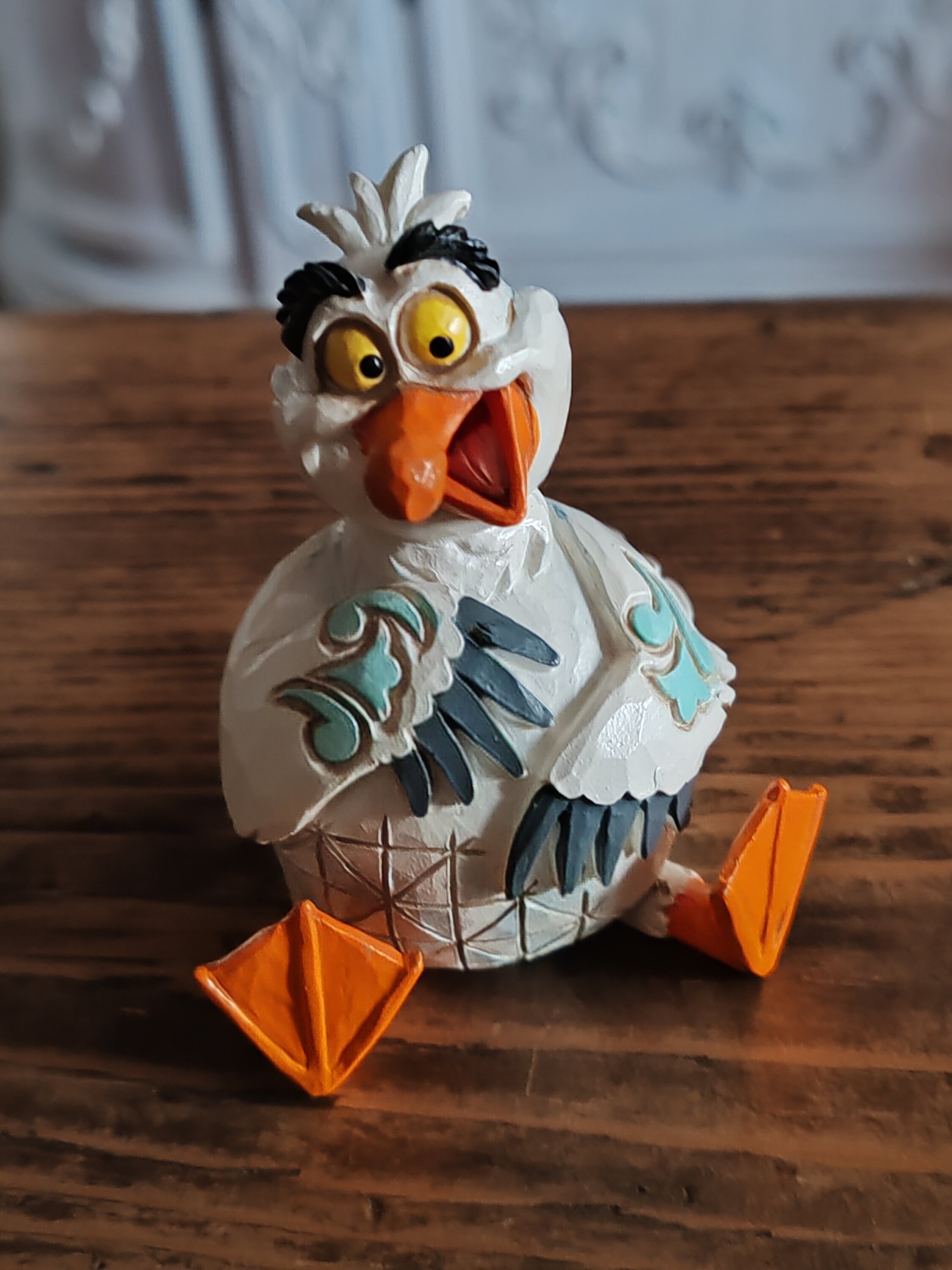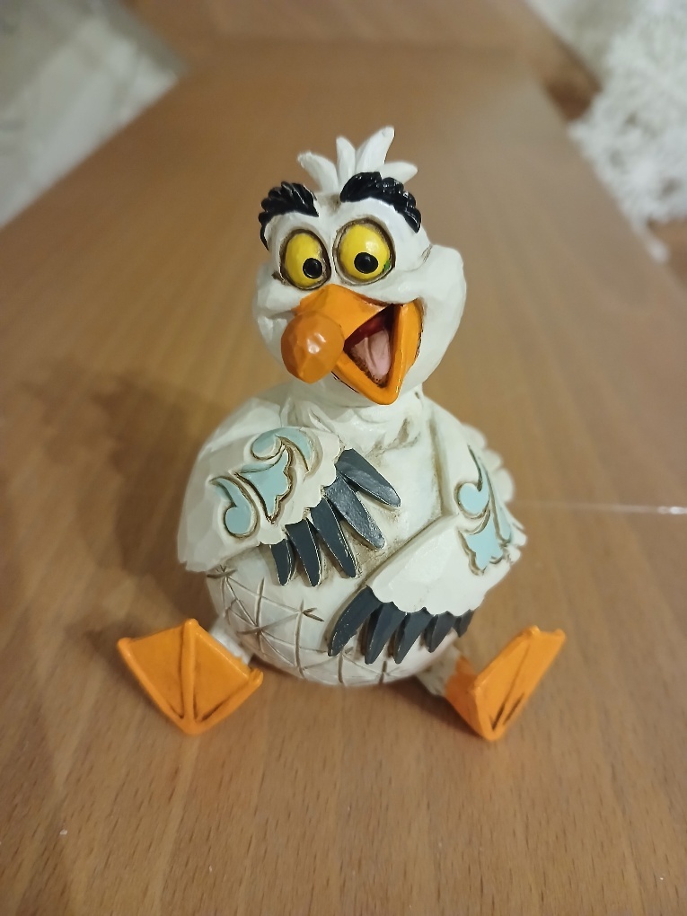 Attendevo con ansia una statuina di Scuttle realizzata da Jim Shore, perché era l'unico personaggio che mancava all'appello. E finalmente eccolo qui! Bellissimo!