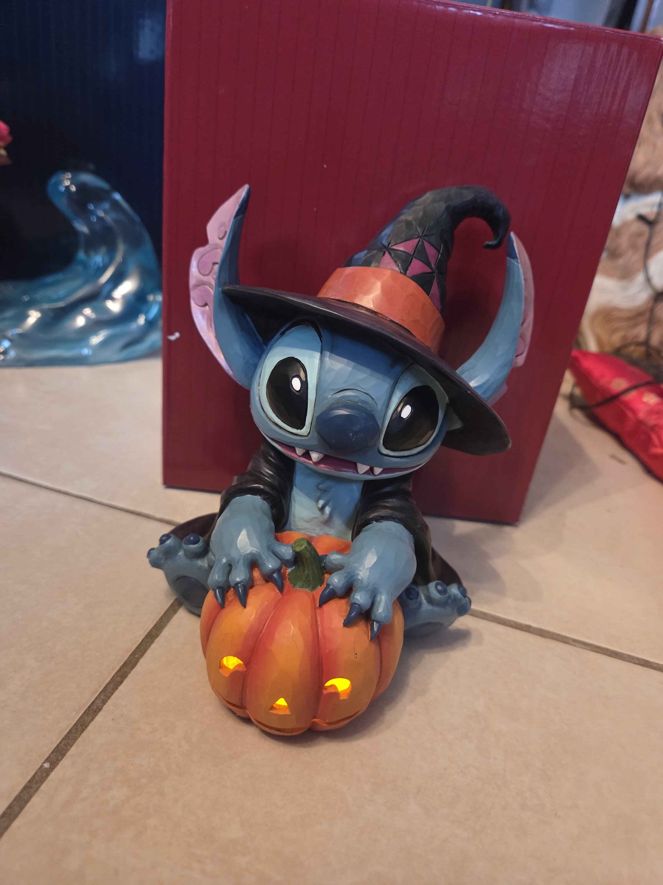 Très belle figurine, plus grande que ce que j'imaginais. C'est une bonne surprise ! Un Stitch incontournable pour moi qui les collectionne ! Une bouille adorable et une citrouille lumineuse.
