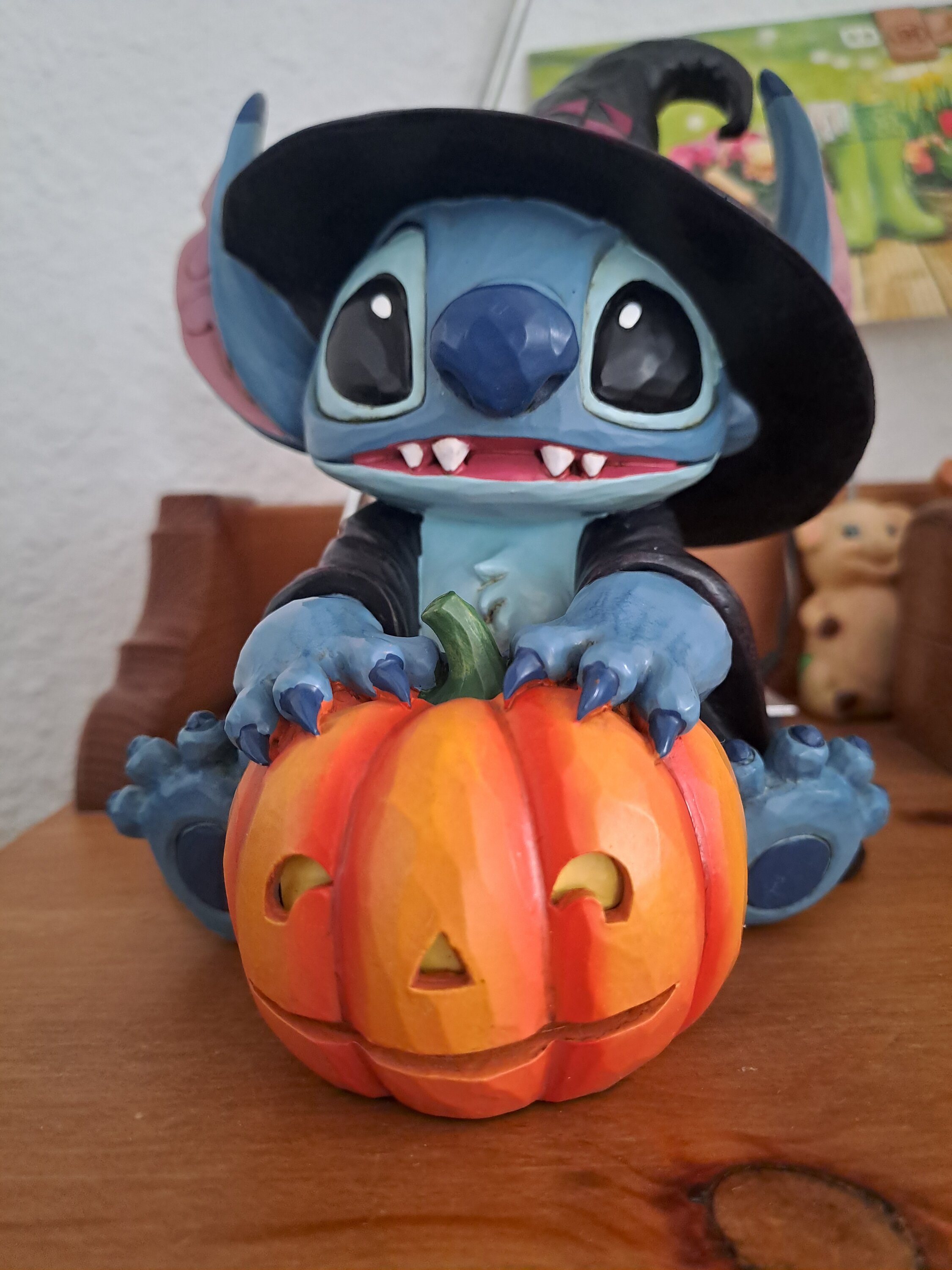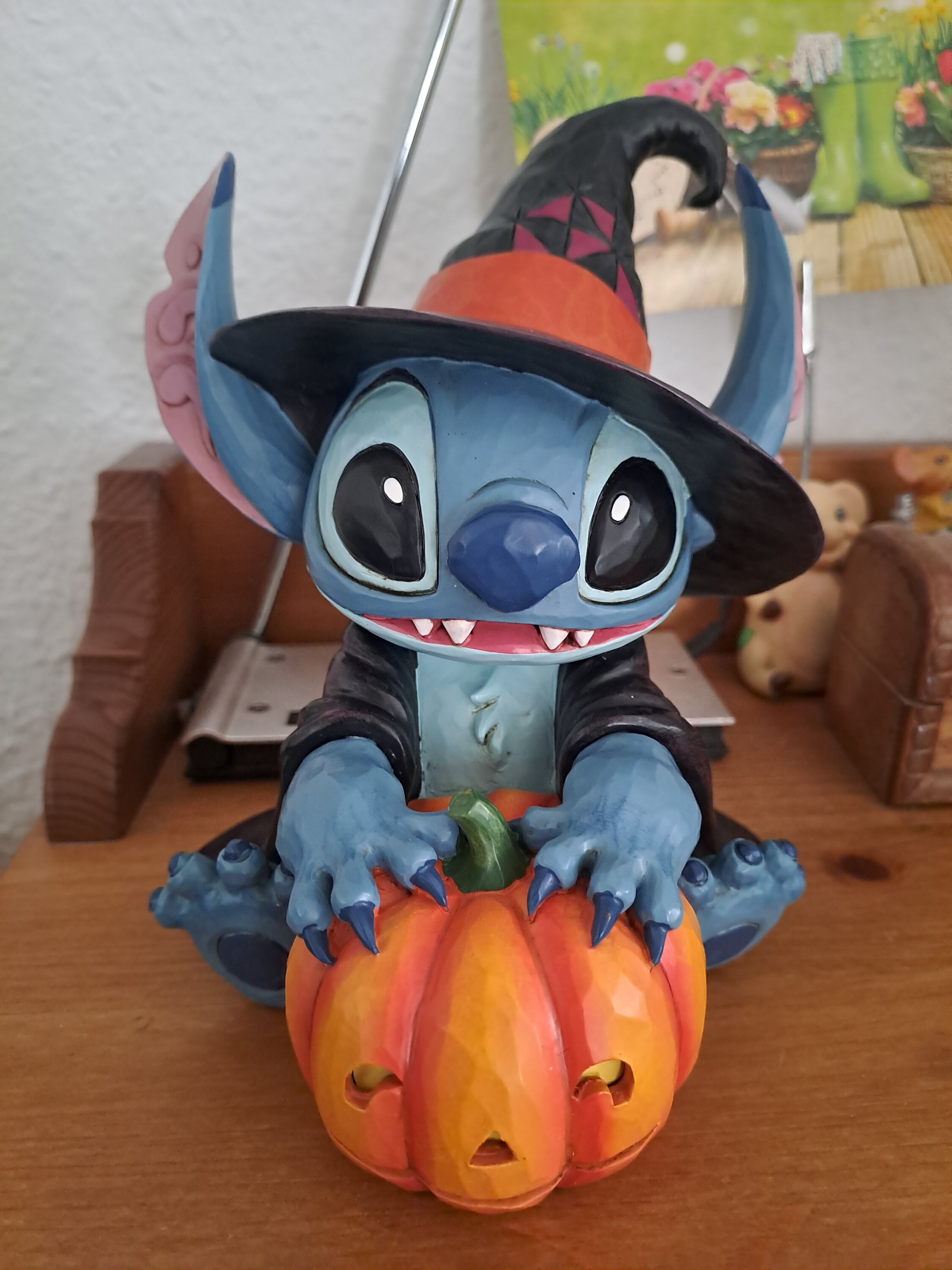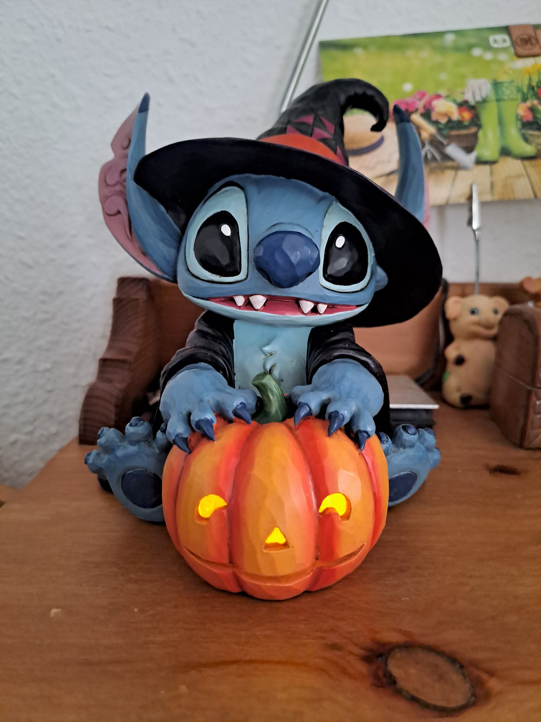Der Hexenhut steht Stitch hervorragend und die leuchtende Kürbis macht Figur sehr passend zu Halloween.