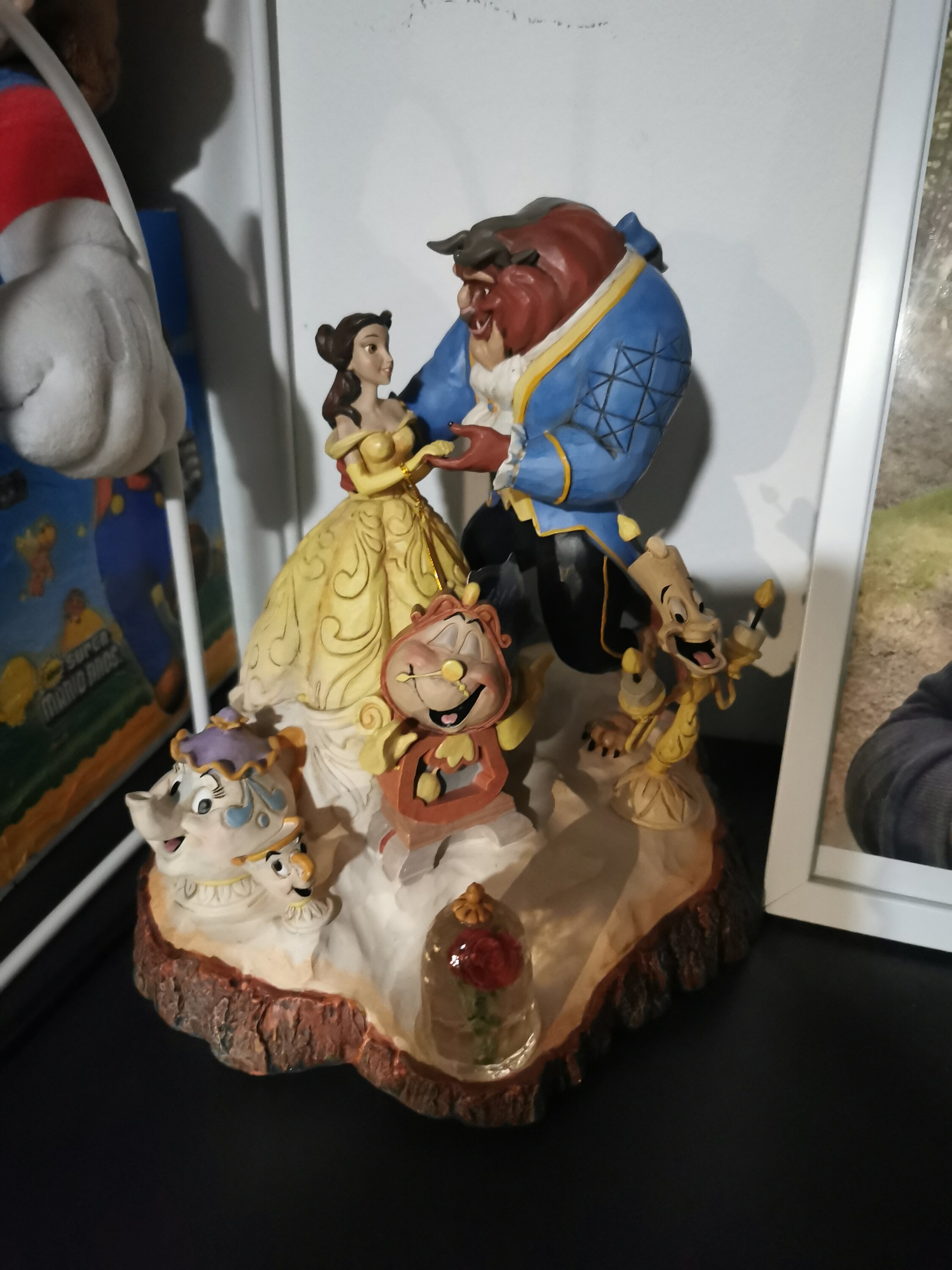 Une superbe version Woodcarved (sculpté sur bois) de la Belle et la Bête. Il s'agit de la dernière version avec la figurine Lumière aimantée.