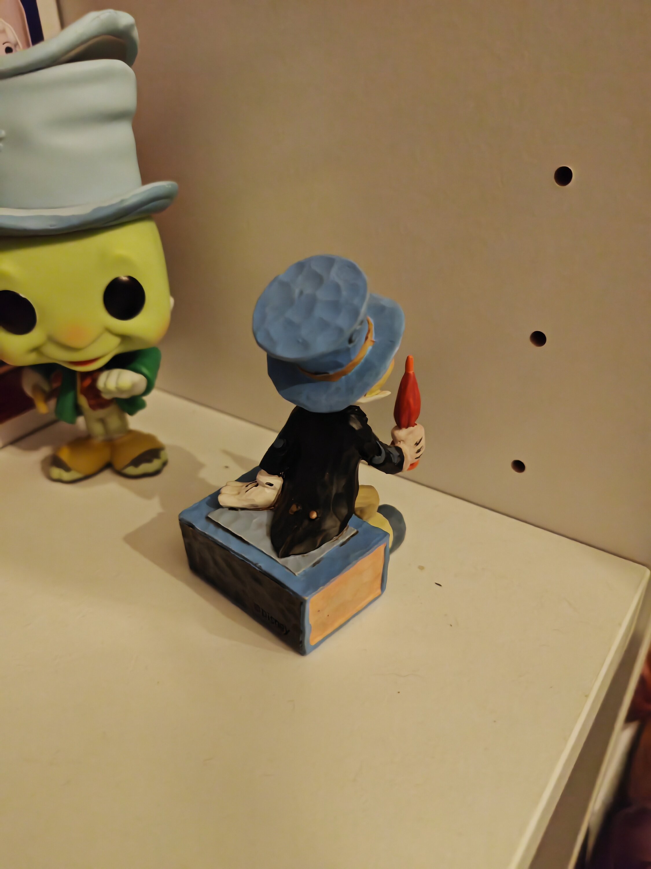 J'ai toujours aimé ce petit personnage de Pinocchio, le brave Jiminy Cricket. Cette figurine est super bien faite car il est tout mimi, tout joyeux assis sur sa boîte d'allumette et il rend super bien sur une étagère ou au pied d'une lampe.