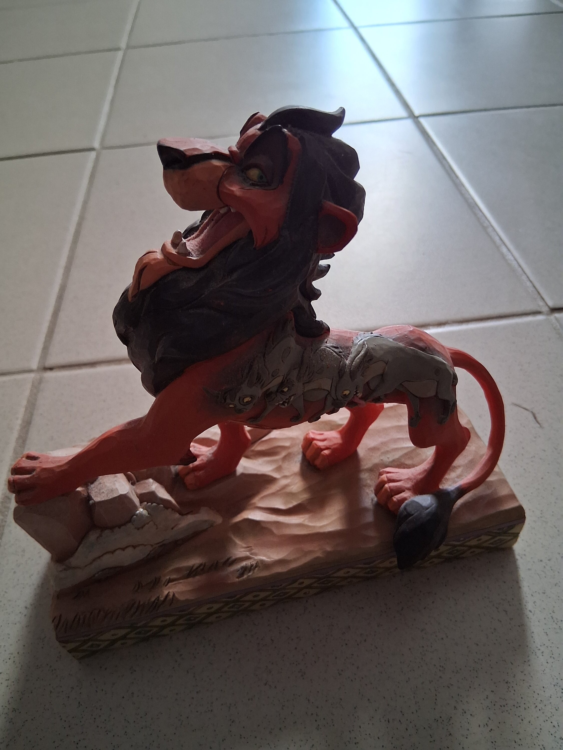 Cette statuette est vraiment superbe ! La prestance de Scar et les trois hyènes gravées sur son corps, vraiment unique ! A possédé dans toute collection du Roi Lion 🤩
