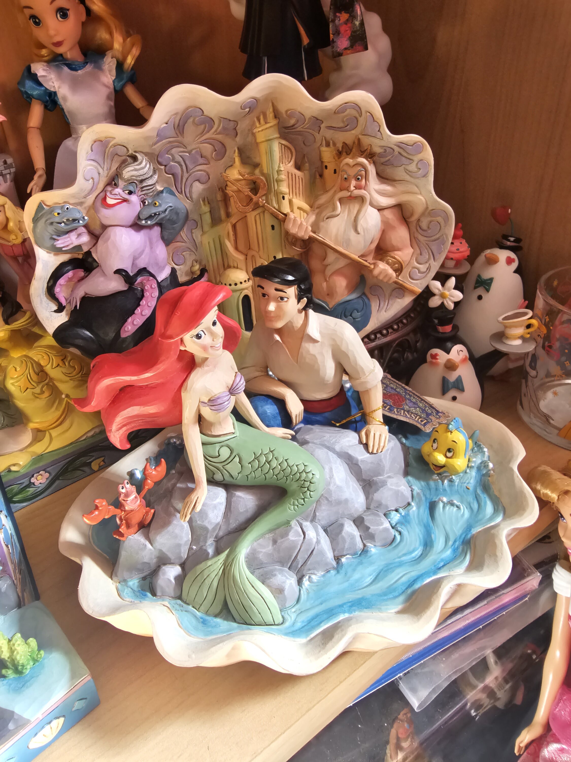 Cette figurine Jim Shore inspirée de l'affiche originale du film est tout simplement parfaite ! Incluant Ariel, Éric, Sébastien, Polochon ainsi que Triton, Ursula, Flotsam et Jetsam en arrière plan (ainsi que le somptueux palais d'Atlantica), il ne manque qu'Eurêka pour compléter le tableau (mais étant donné qu'il vole ça aurait sans doute été compliqué de l'inclure...) Le tout présenté dans une coquillage géant, c'est vraiment bien pensé. Je le recommande vivement. À noter également que les couleurs ne sont pas aussi vives que les photos du site le laissent penser, donc n'hésiter pas si vous êtes comme moi fan du film ! 😄