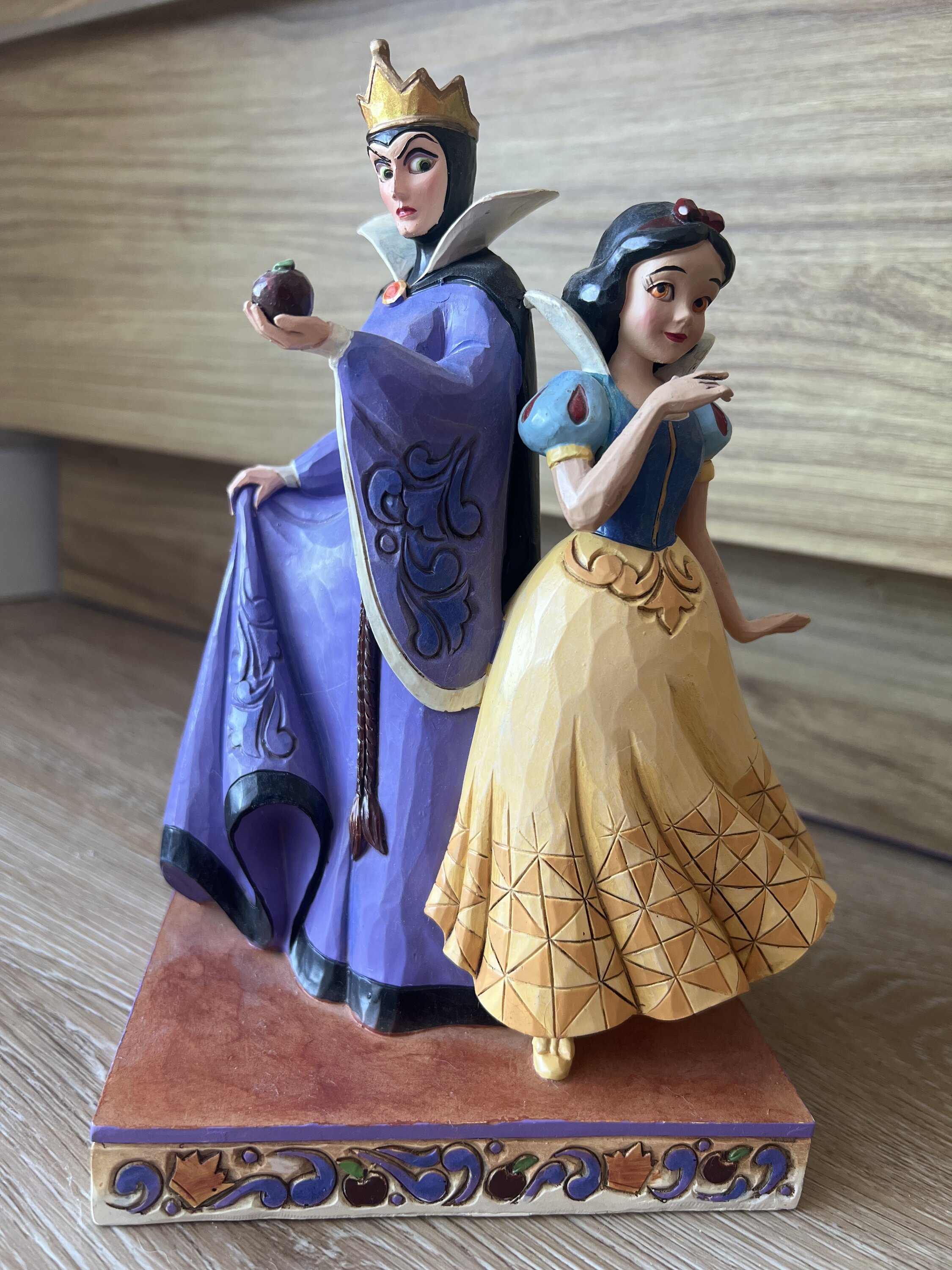 Heureux d'ajouter cette statue à ma collection. Je n'ai pas donné cinq étoiles uniquement à cause de la présence de petites imperfections détectables sur la main de Blanche Neige et de la présence de la couleur rouge de la pomme sur la main de la reine.