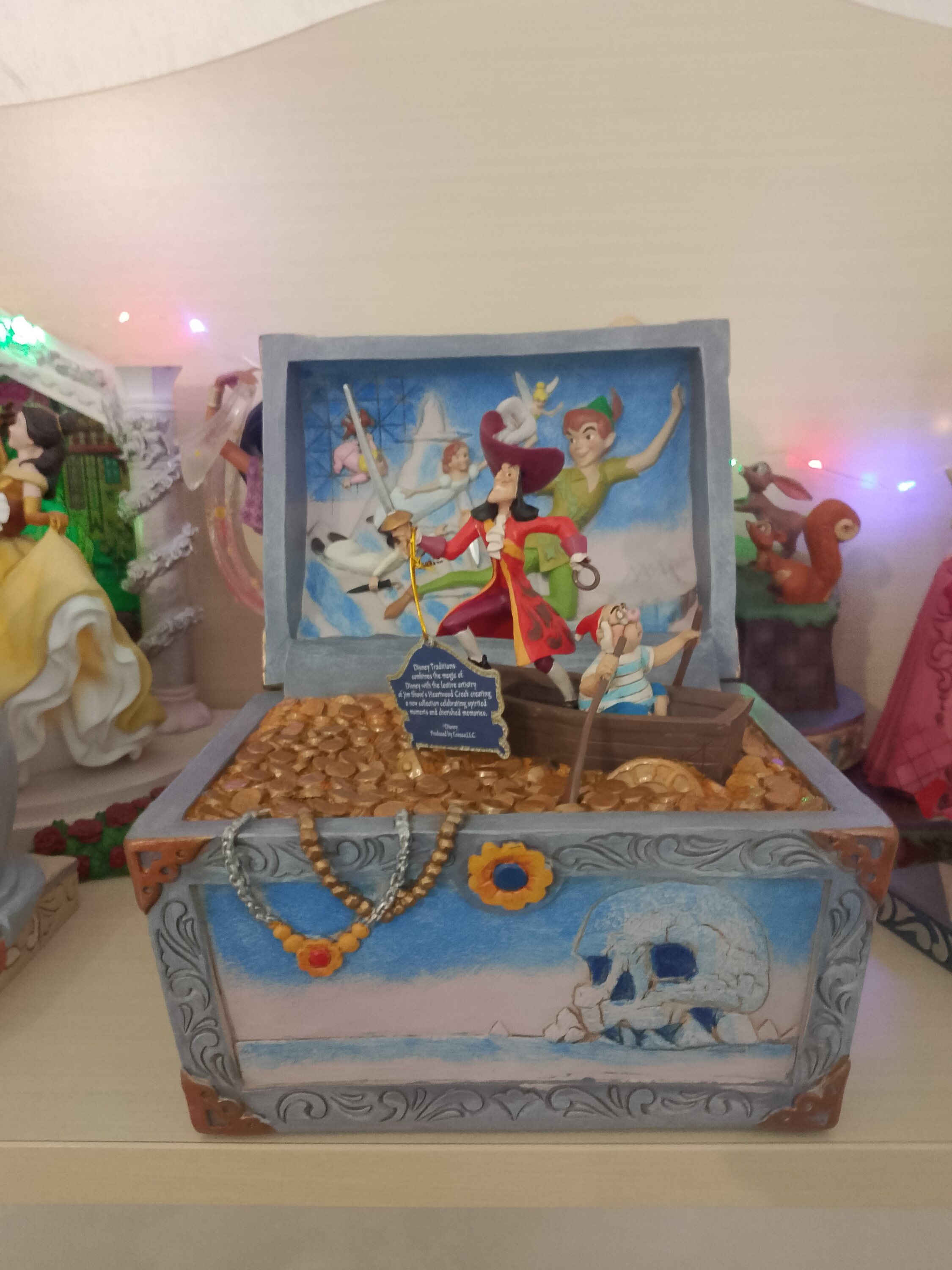 Si vous aimez les chasses aux trésors alors cette figurine est pour vous !!! On y vois le cap’tain Crochet et monsieur Mouche naviguant sur un océan de pièce d’or .. avec en fond peter pan et ses amis !! Jim Shore