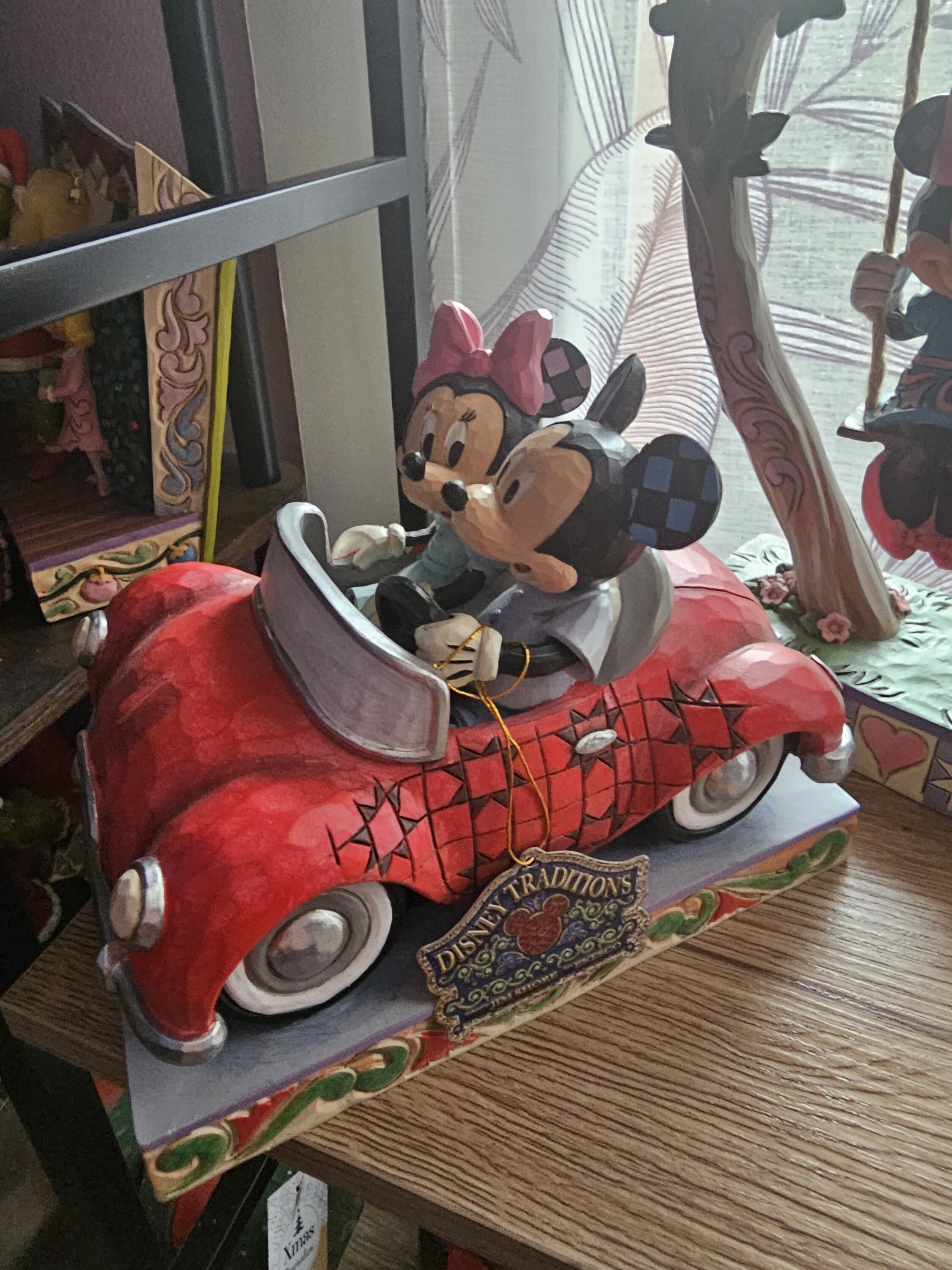 Mickey & Minnie, le couple phare de Disney, nous embarquent pour une balade en voiture dans cette superbe figurine de Jim Shore.