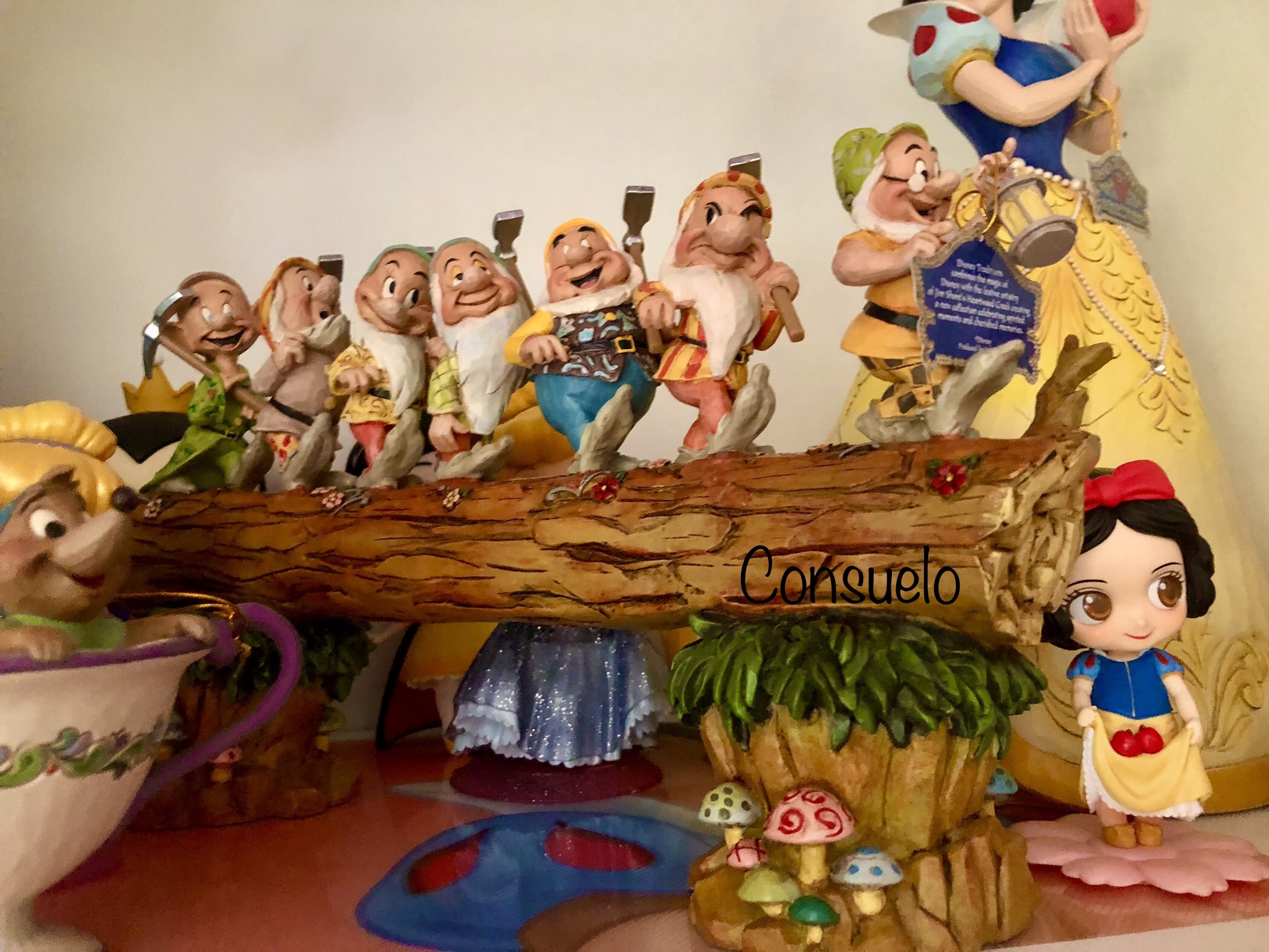 Sicuramente uno tra i pezzi più riusciti di Jim Shore. L' articolo è davvero realizzato nei minimi dettagli, raffigura la scena in cui Eolo, Pisolo, Mammolo, Cucciolo, Dotto, Brontolo e Gongolo fanno rientro a casa dopo la giornata lavorativa. Sembra quasi di ascoltare la canzone "Hej - Ho". Assolutamente strepitoso!