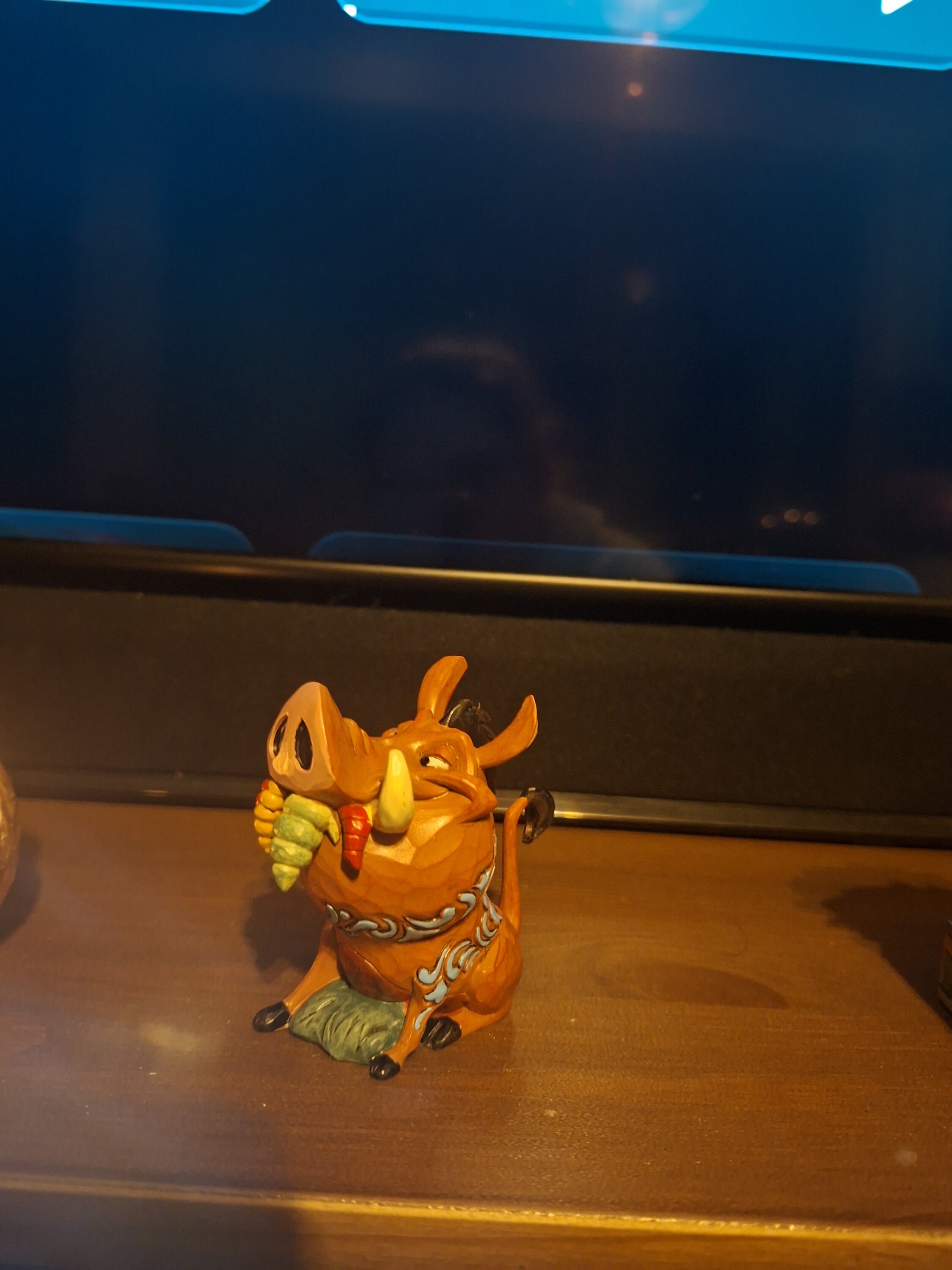 Wer braucht schon Deko-Blumen, wenn man ein Warzenschwein mit einem Mund voller Käfer haben kann? Die Figur ist fantastisch verarbeitet und sieht durch die geschnitzte Optik richtig edel aus – auch wenn Pumbaa gerade sein „Schleimig, aber vitaminreich“-Frühstück genießt. Er ist das perfekte Highlight in meiner Sammlung und verbreitet sofort gute Laune. Ein Muss für alle, die ein Herz für Pups-Kanonen und Disney-Klassiker haben. Er riecht übrigens deutlich besser als das Original!