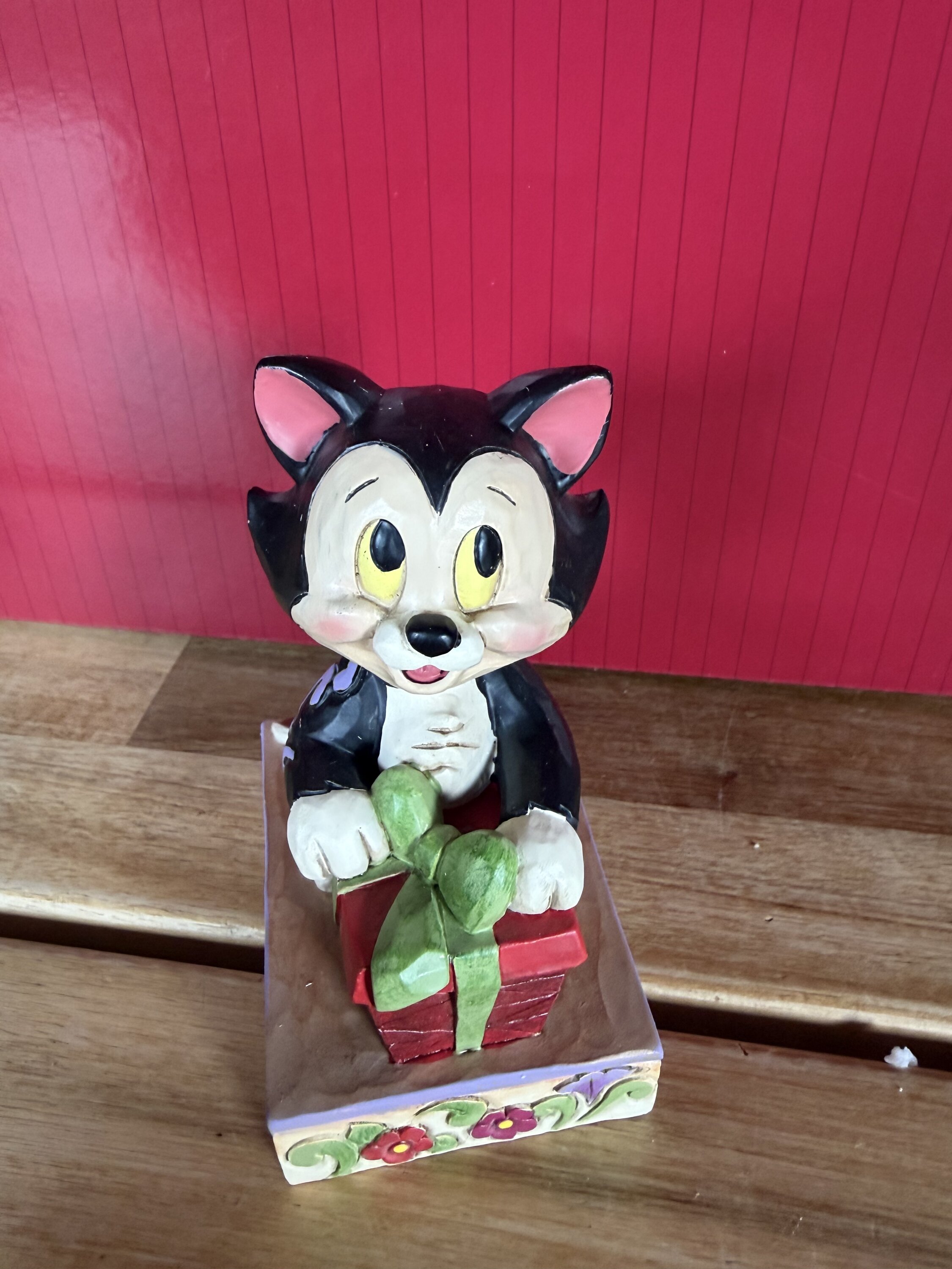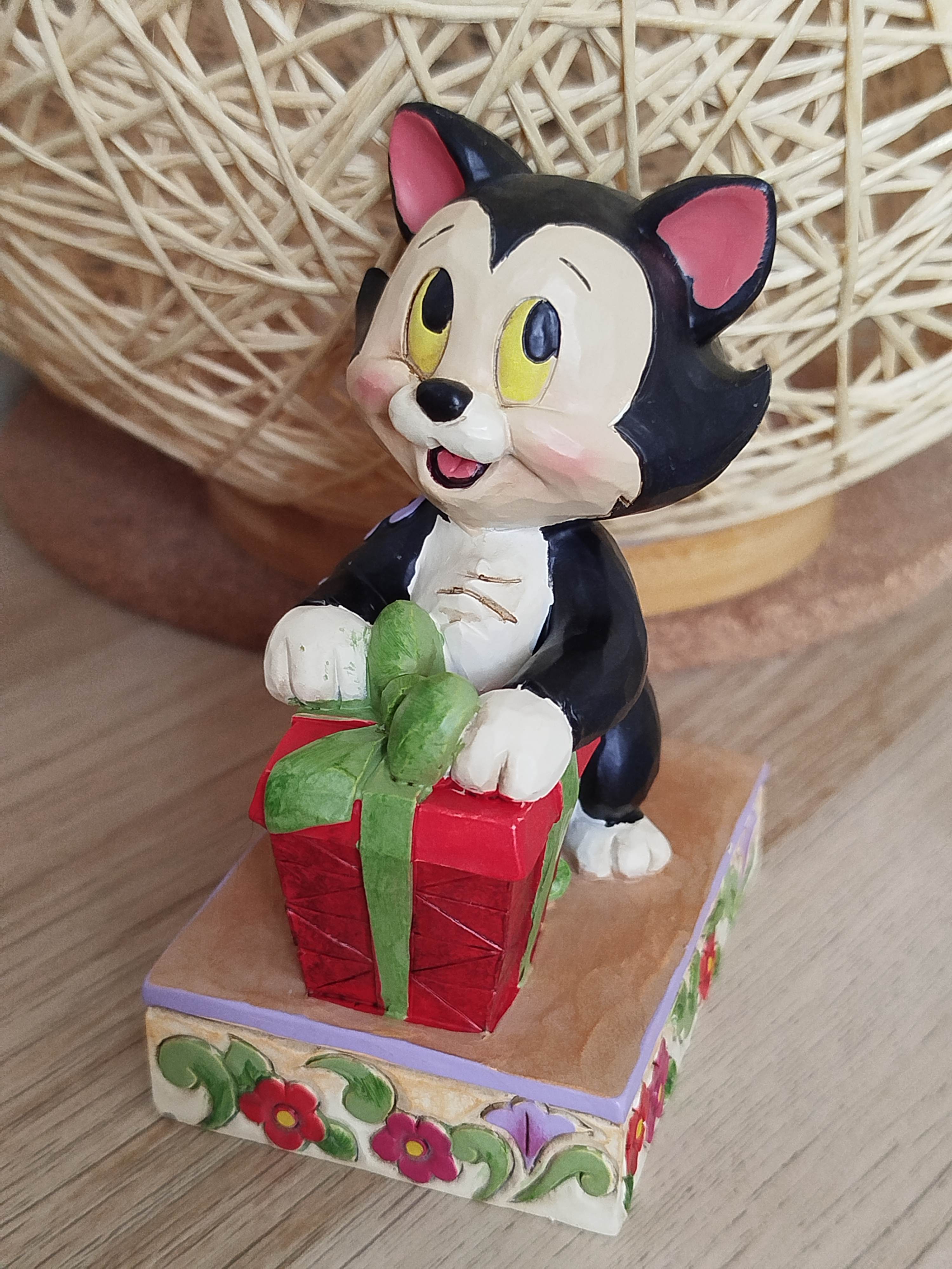 Attendant avec impatience le matin de Noël, Figaro, le chat de compagnie de Geppetto, est assis avec ses pattes blanches sur un cadeau. Apparu pour la première fois dans le film de Disney de 1940, Figaro a également fait des apparitions dans les dessins animés de Mickey