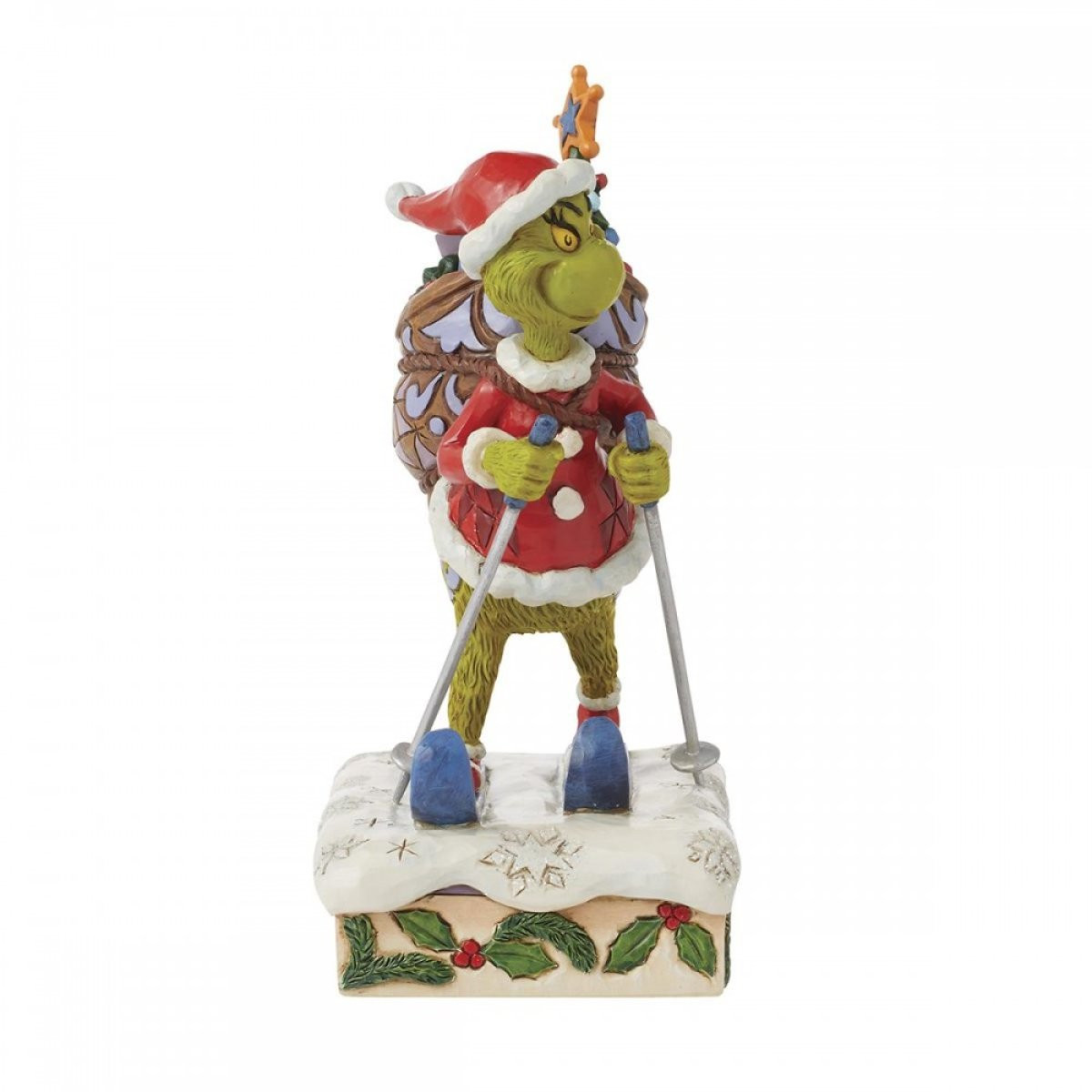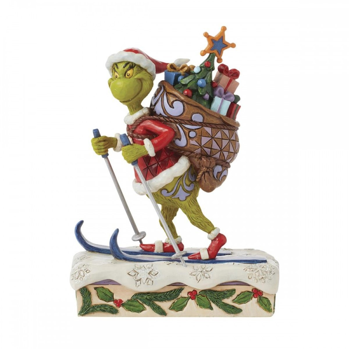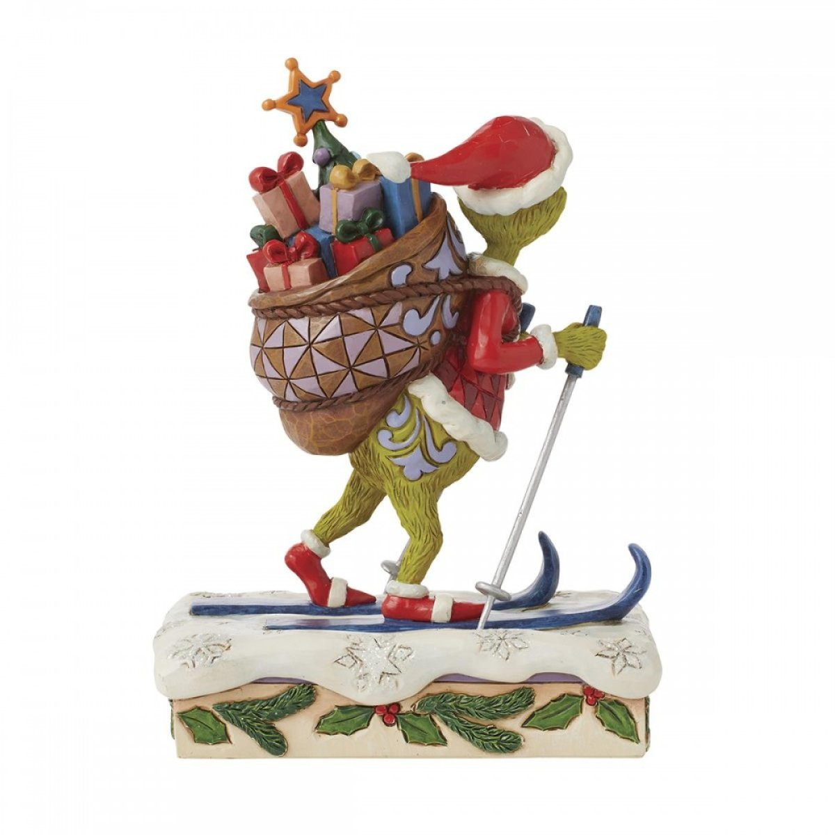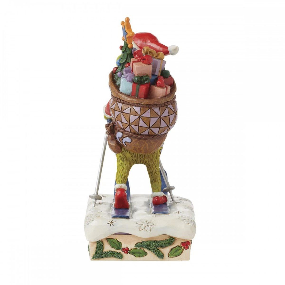 Cette figurine représente le Grinch skiant à travers les montagnes enneigées avec un lourd sac de cadeaux et un arbre sur le dos. Habillé en Père Noël, il ne va pas livrer ces cadeaux, mais vient de les voler chez tous les enfants de Chouville ! De la collection Grinch, conçue par l'artiste et sculpteur primé Jim Shore. Chaque figurine est peint à la main et de légères variations de couleurs sont à prévoir, rendant chaque pièce unique. Emballé dans une boîte cadeau. Ces articles ne sont pas des jouets pour enfants. Destiné aux adultes uniquement.