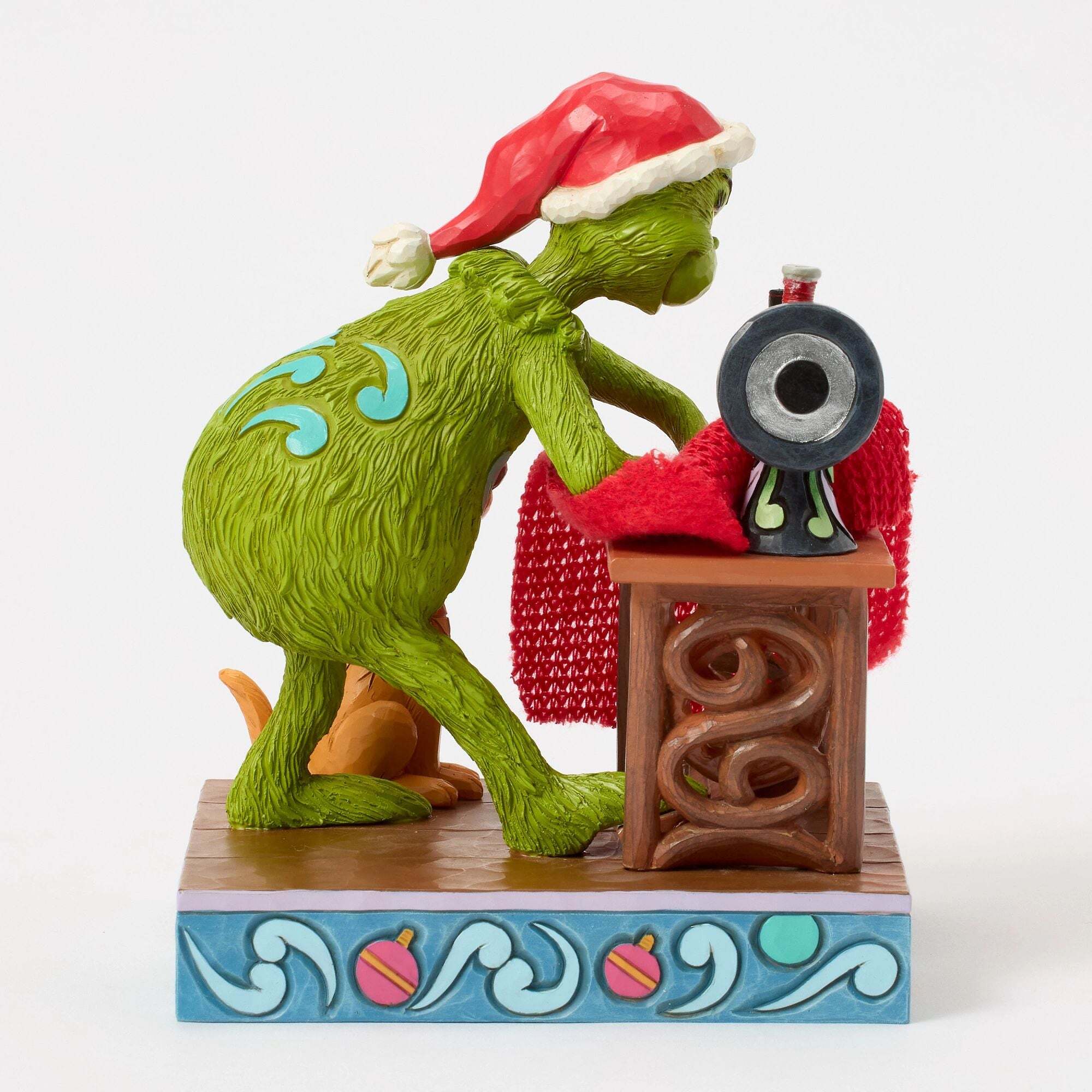 Inspiré par son plan pour voler Noël, le Grinch coud son costume de Noël sous le regard intrigué de Max . Ornée des motifs floraux de Jim Shore , inspirés de la machine à coudre, et des détails signature de Jim Shore, cette figurine incarne l'esprit espiègle des fêtes. Conçue par l'artiste et sculpteur primé Jim Shore pour la collection Grinch. Ces figurines ne sont pas des jouets pour enfants. Réservées aux adultes. Hauteur: 15cm