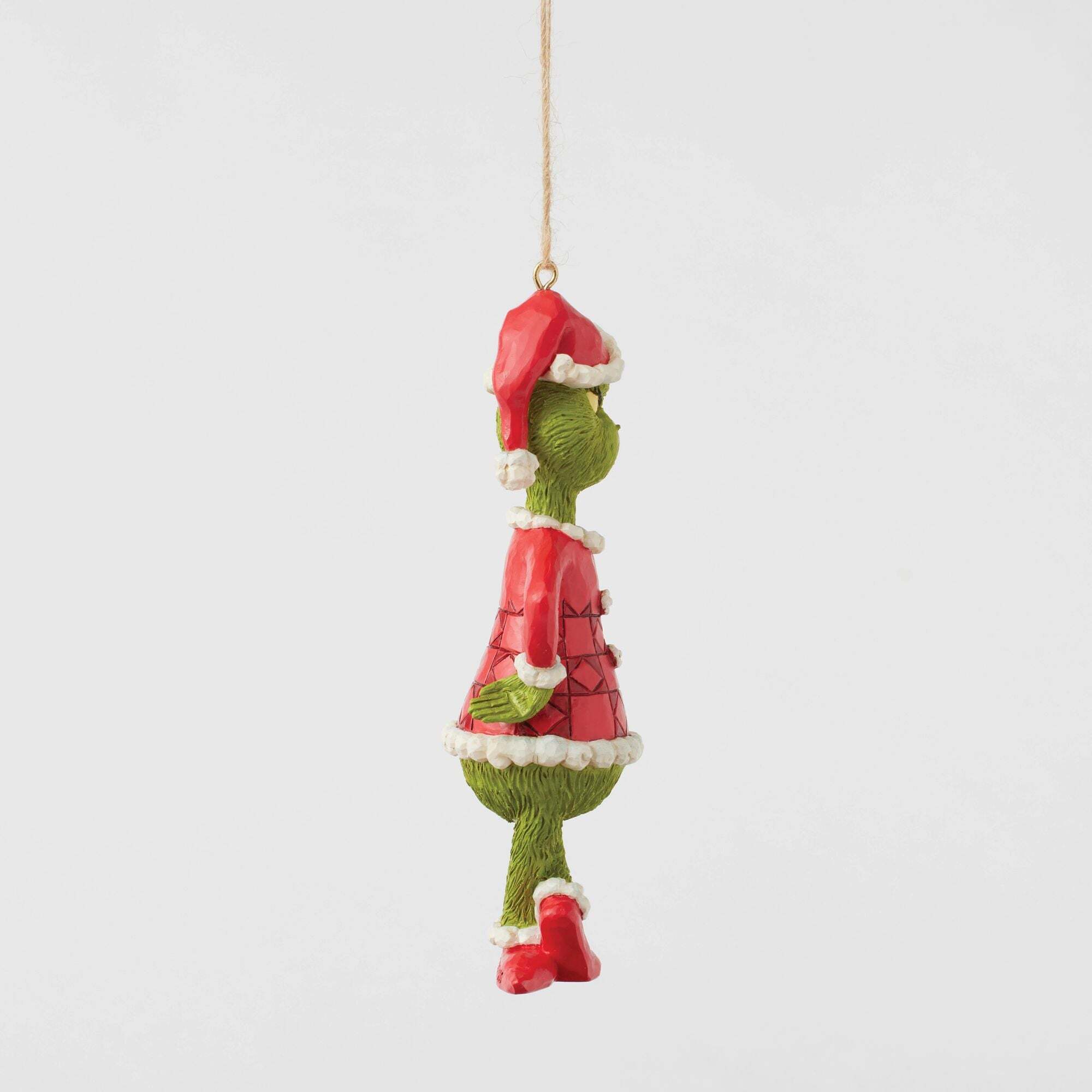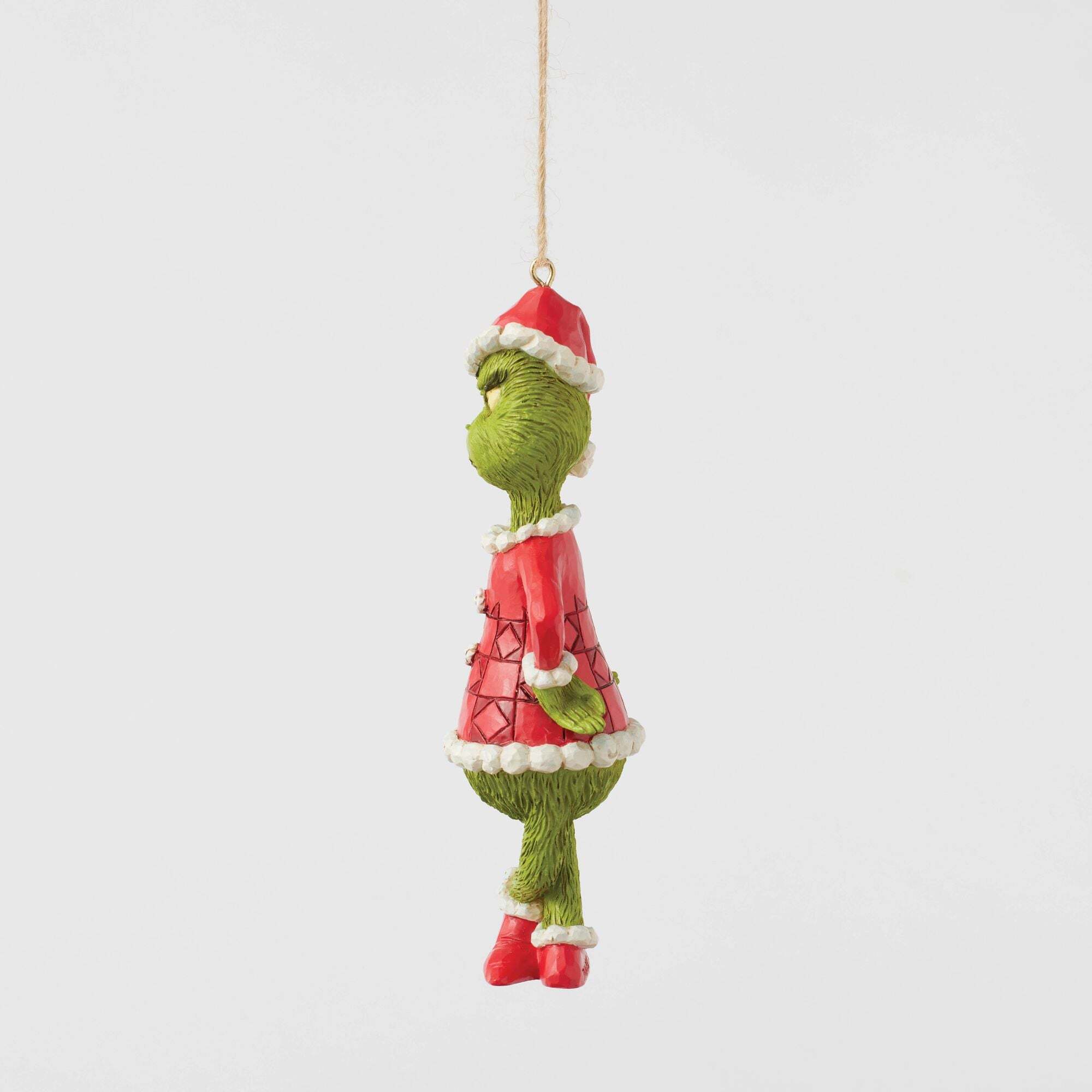 Dans une pose espiègle, le Grinch se tient debout, les chevilles croisées et les mains sur les hanches, affichant son expression malicieuse caractéristique. Cette décoration à suspendre de Jim Shore capture parfaitement son charme têtu et ajoute une touche de son humeur grincheux de Chouville à vos célébrations. Conçue par l'artiste et sculpteur primé Jim Shore pour la collection Grinch. Ces figurines ne sont pas des jouets pour enfants. Réservées aux adultes. Hauteur: 13,5 cm