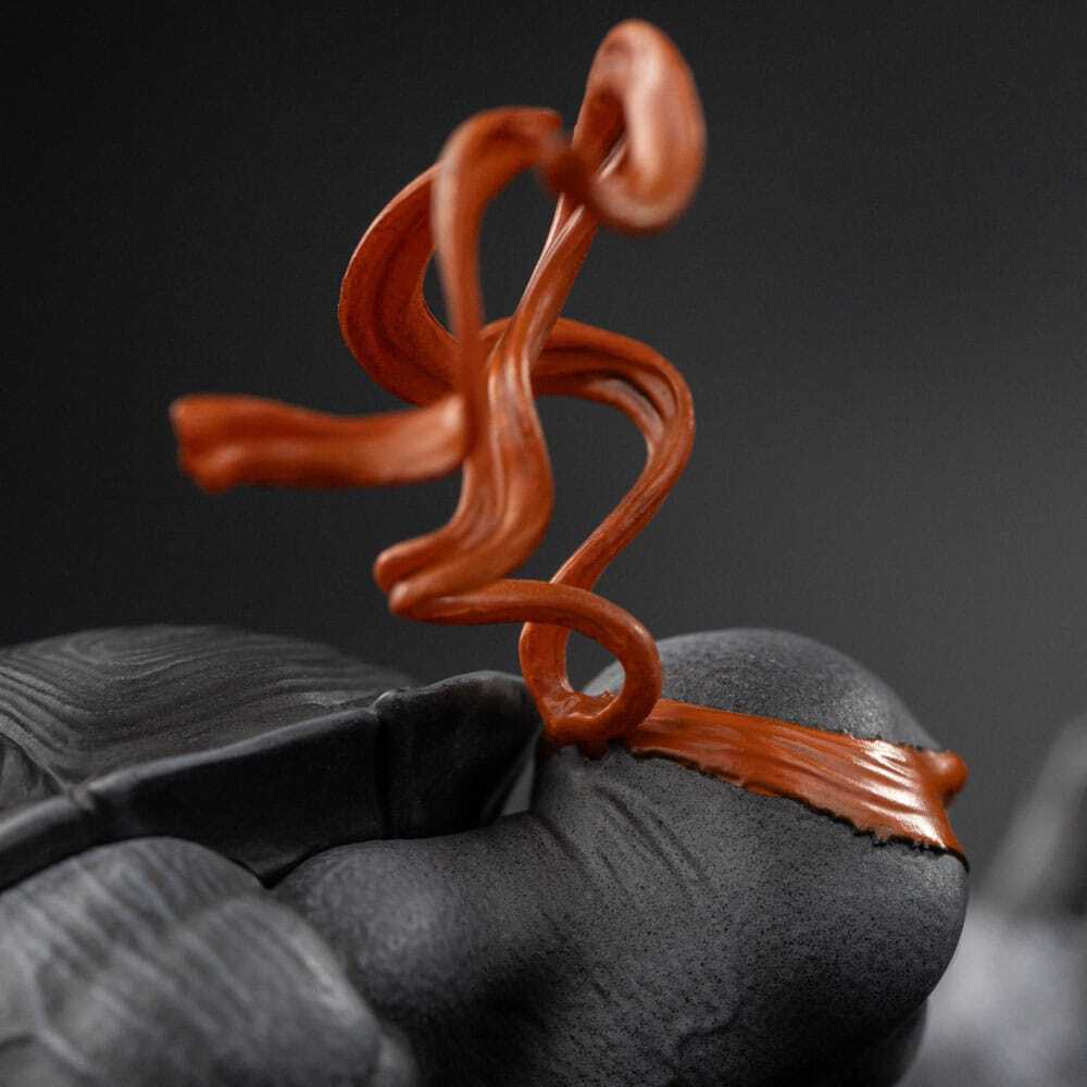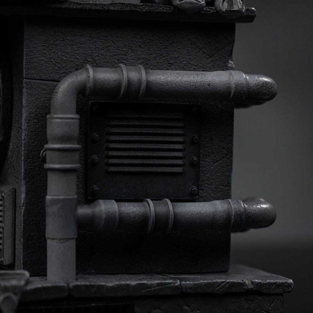 Statuette en résine à l'échelle 1/10, dimensions approximatives 26 x 19 x 15 cm sur socle, sous licence officielle.
