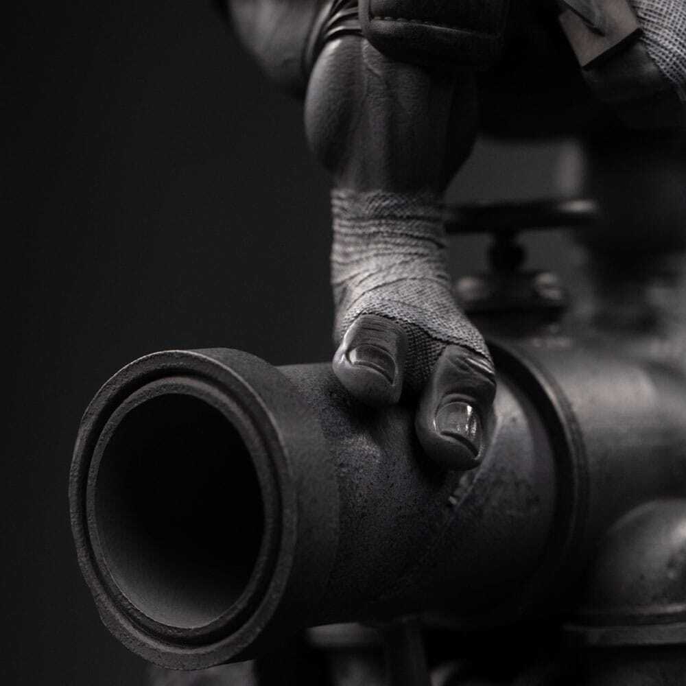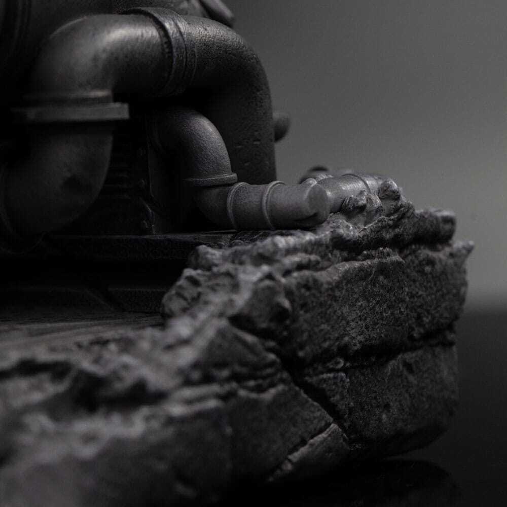 Statuette en résine à l'échelle 1/10, dimensions approximatives 26 x 19 x 15 cm sur socle, sous licence officielle.