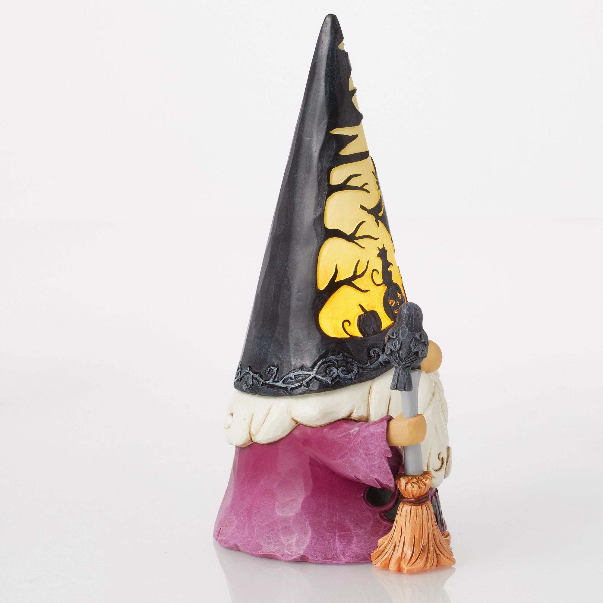 Laissez-vous envoûter par l'esprit d' Halloween avec cette superbe figurine de gnome sorcière signée Jim Shore. Son chapeau cache un cimetière lumineux, où une sorcière semble s'envoler dans la nuit pour un spectacle magique.