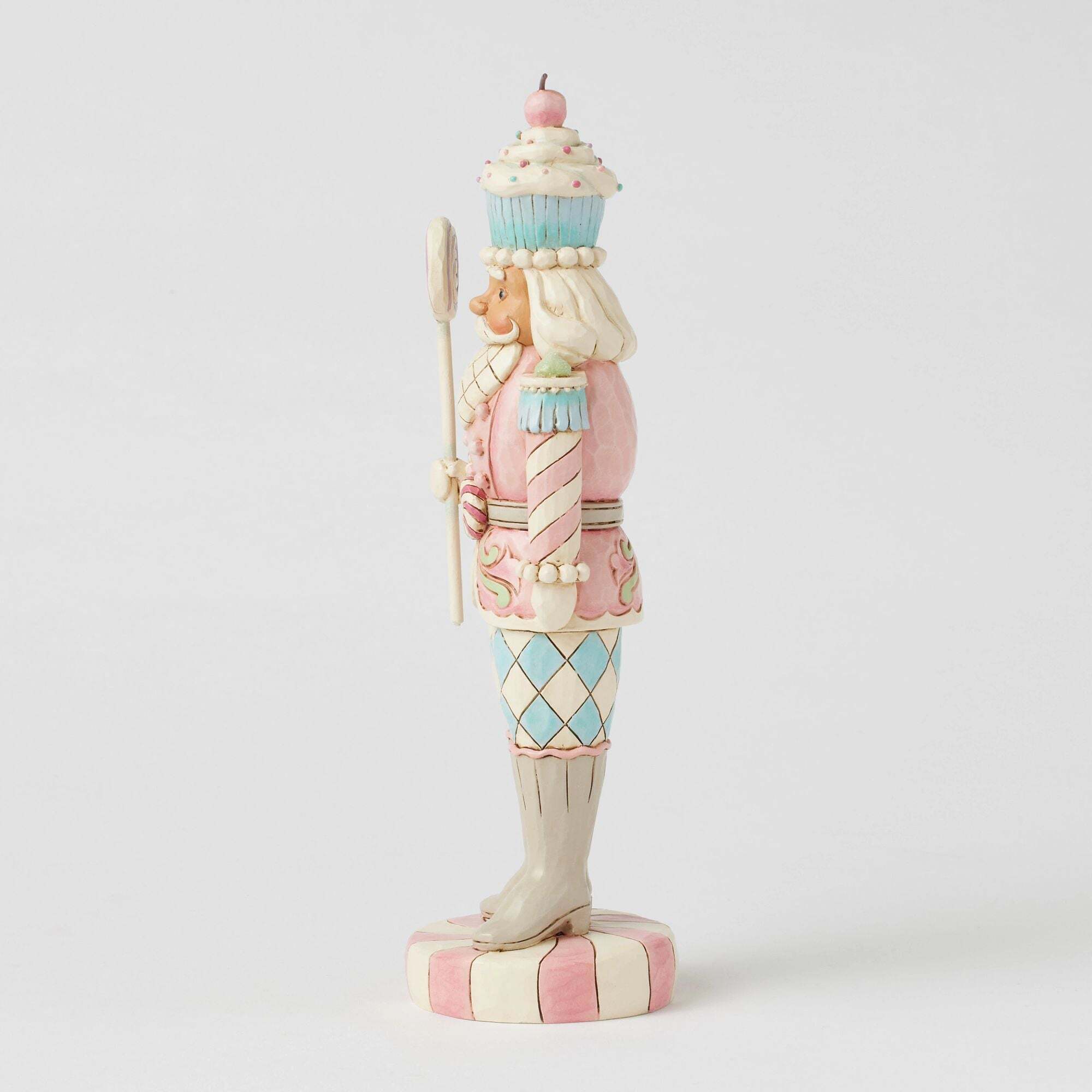 Cette figurine de soldat de plomb de la collection Heartwood Sweets, conçue par Jim Shore, se dresse fièrement sur un socle couleur menthe poivrée, tenant une canne à sucette. Avec son uniforme orné de glaçage et de bonbons, sa boucle de ceinture couleur menthe poivrée et son charmant chapeau cupcake, il apporte une touche de gaieté festive.