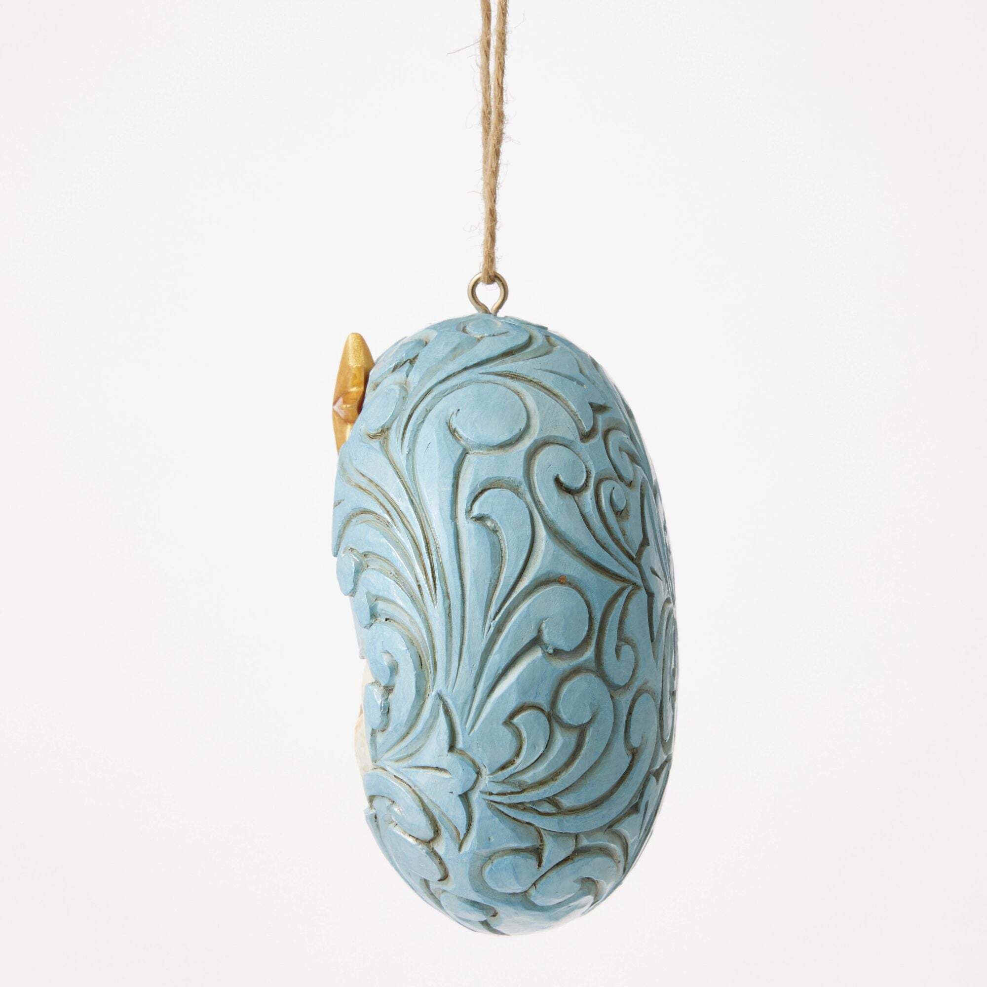 Ce pendentif Jim Shore représente la Sainte Famille, surmontée de l'étoile de Noël dorée qui brille sur un fond bleu apaisant. Ses nombreux détails raffinés dégagent une sensation de paix et d'émerveillement divin.