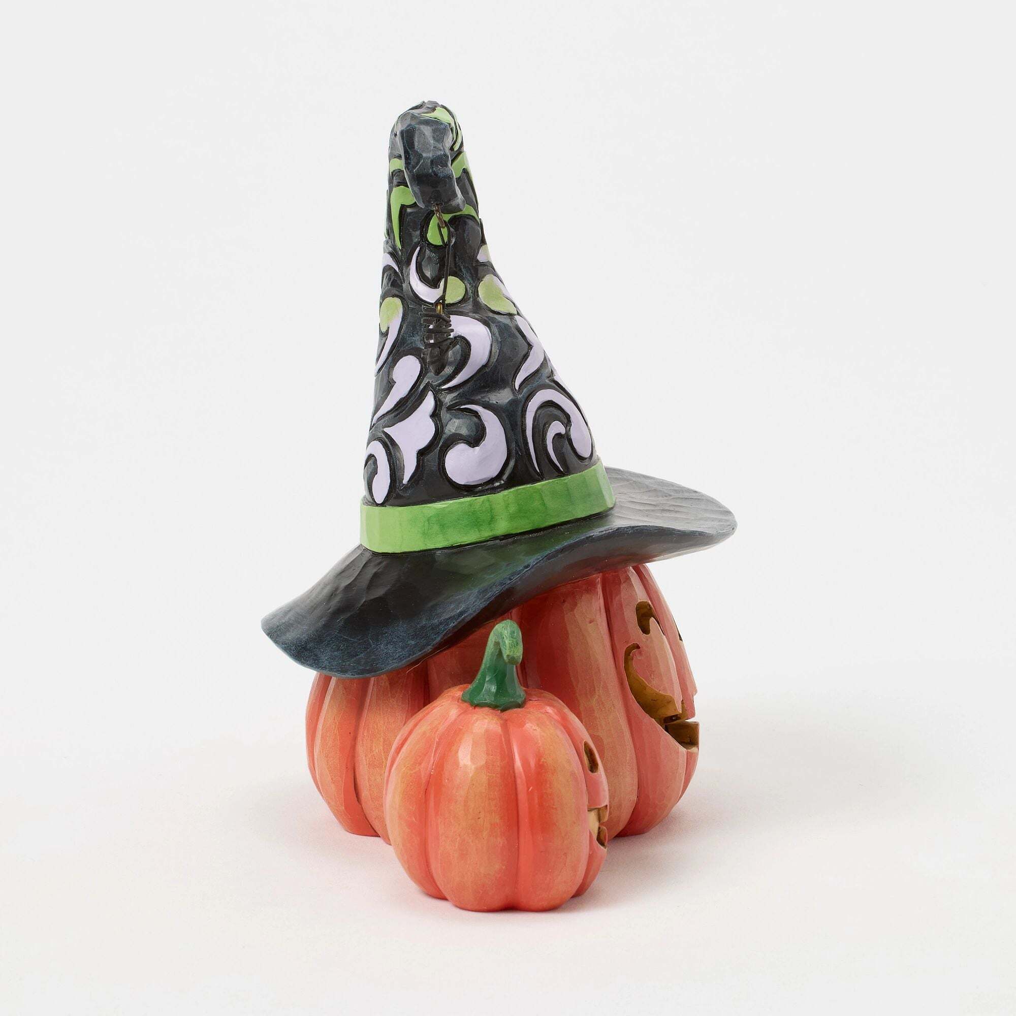 Plongez dans l'esprit Halloween avec ces charmantes figurines Jim Shore, composées de trois citrouilles souriantes. La plus grande, au centre, porte un chapeau de sorcière lumineux ! Ce trio offre une ambiance à la fois festive et mystérieuse.