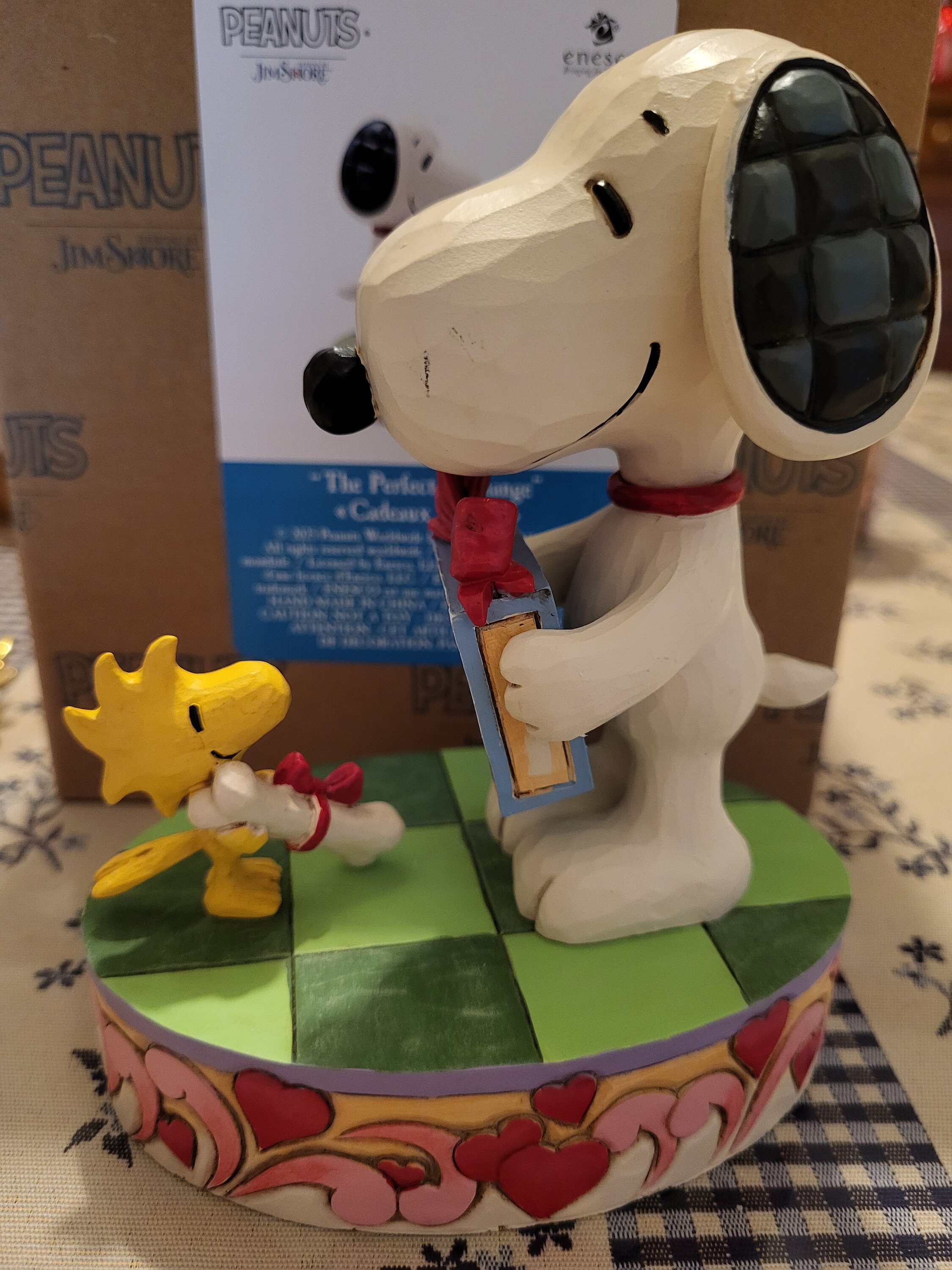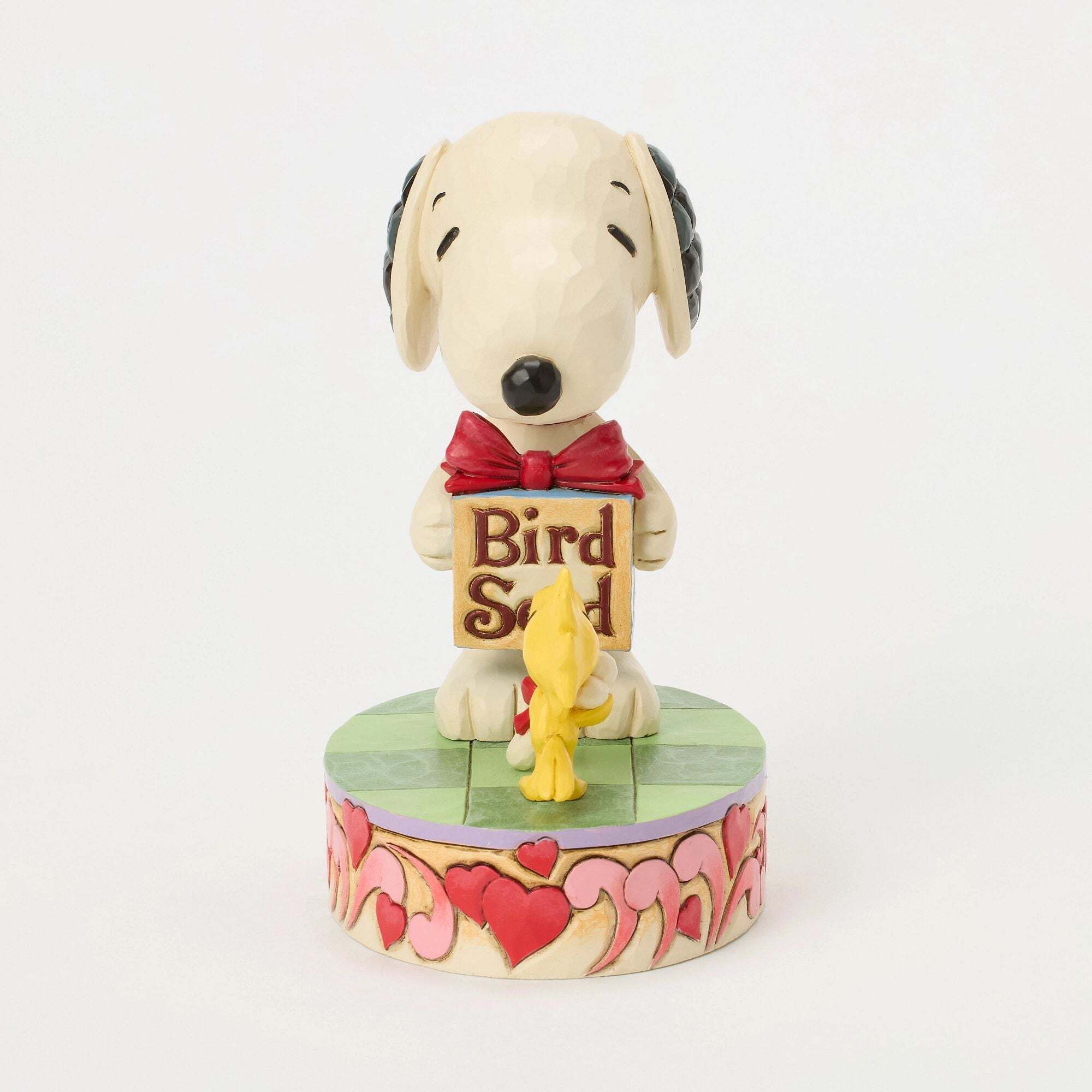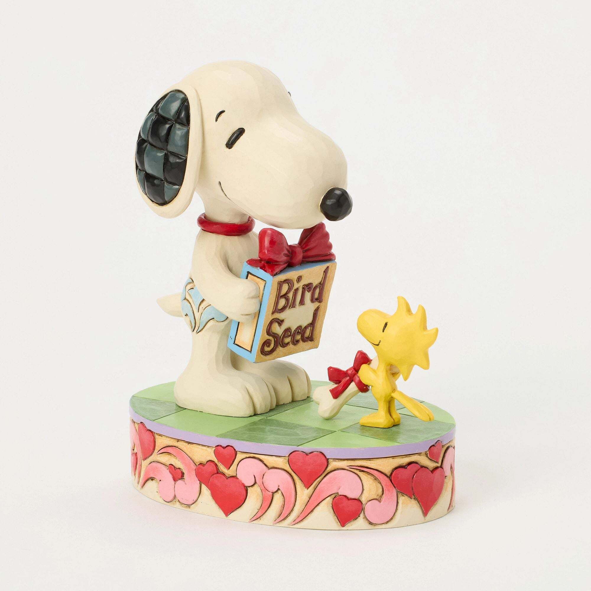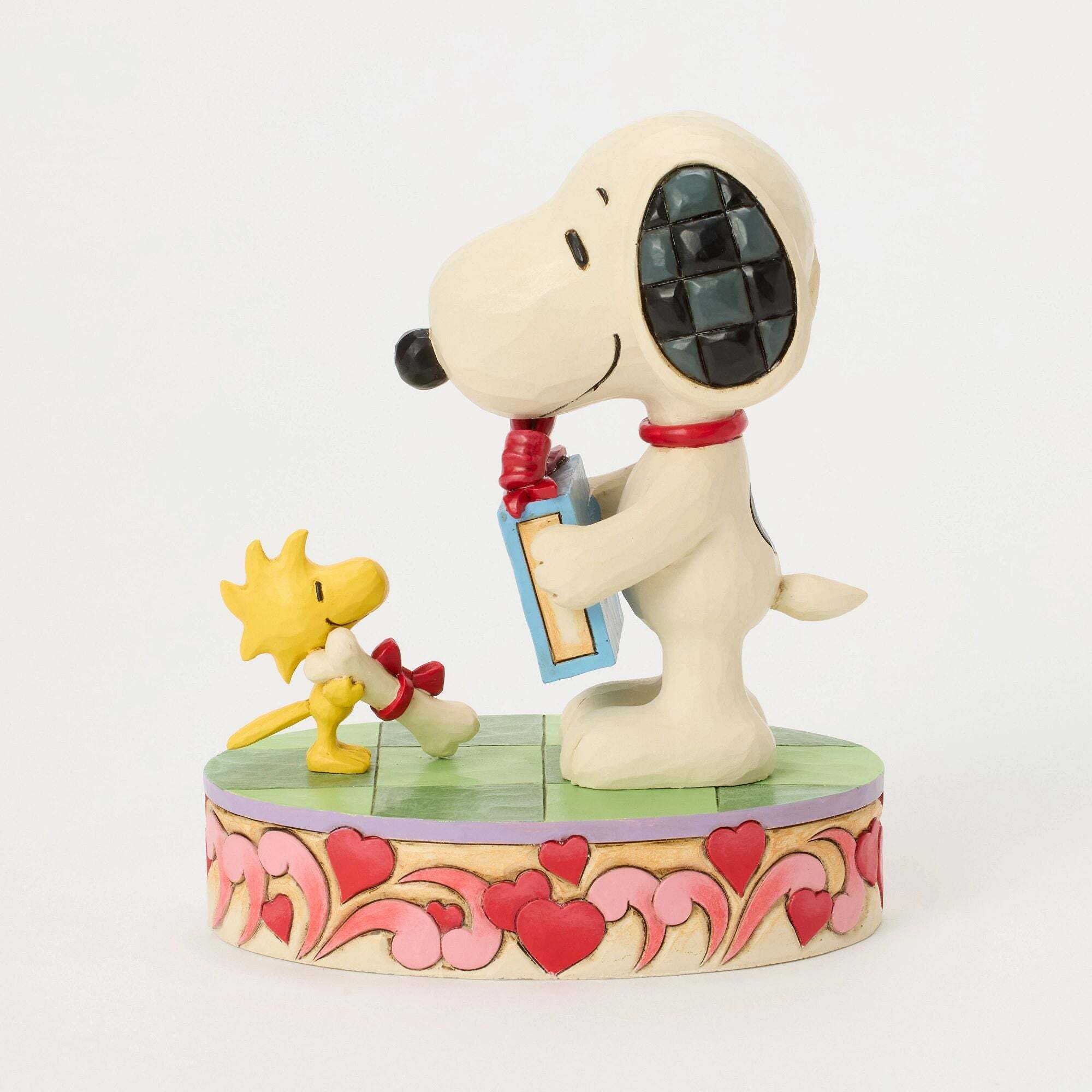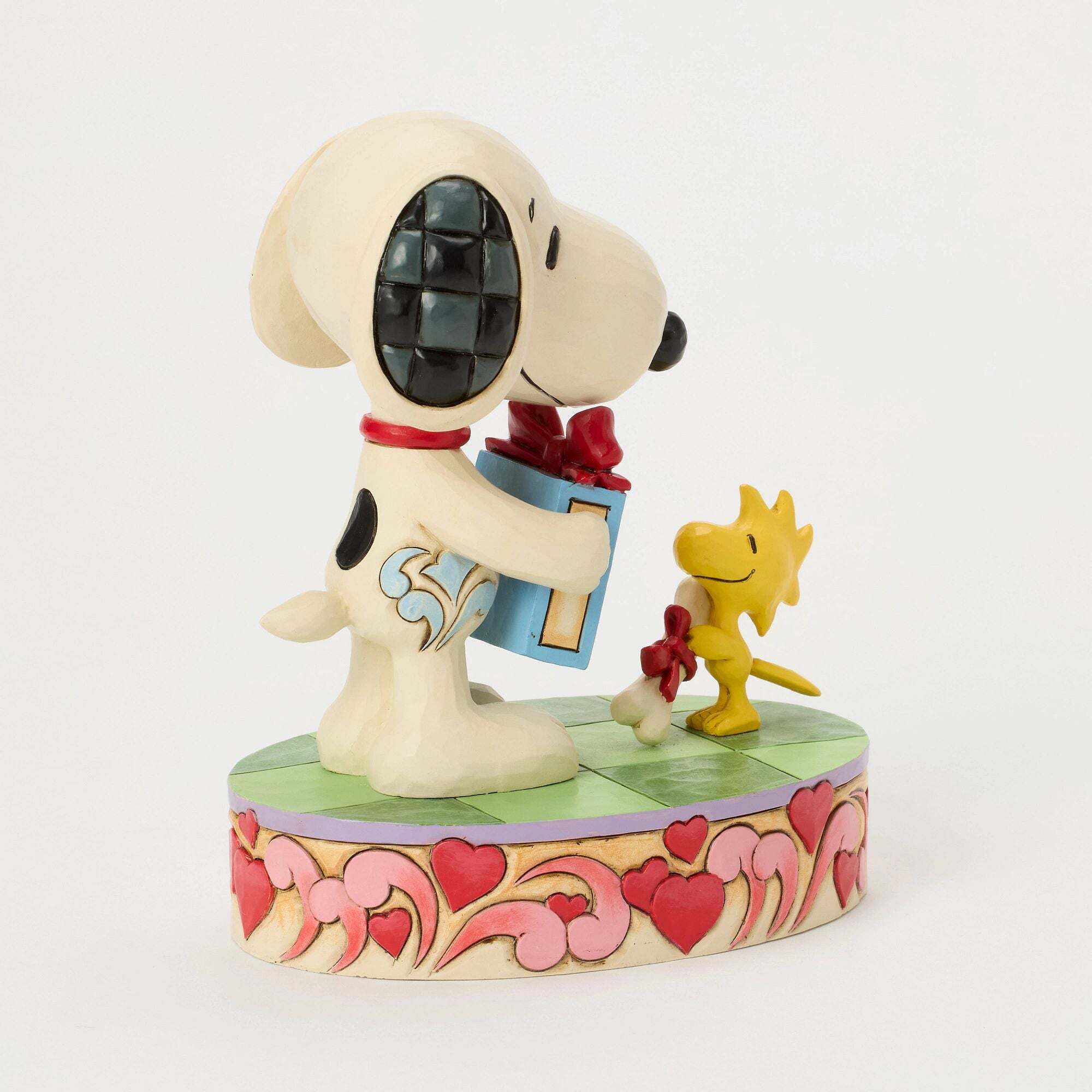 Snoopy et Woodstock partagent un tendre moment d'amitié et d'amour dans cette création de la Saint-valentin signée Jim Shore. Ornée de cœurs et des motifs folkloriques emblématiques de l'artiste, la scène lumière un échange touchant : Snoopy offre des graines à son ami et reçoit en retour un os bien mérité. Une célébration pleine de douceur et de complicité. Ces figurines ne sont pas des jouets pour enfants. Réservées aux adultes. Hauteur: 13,5 cm