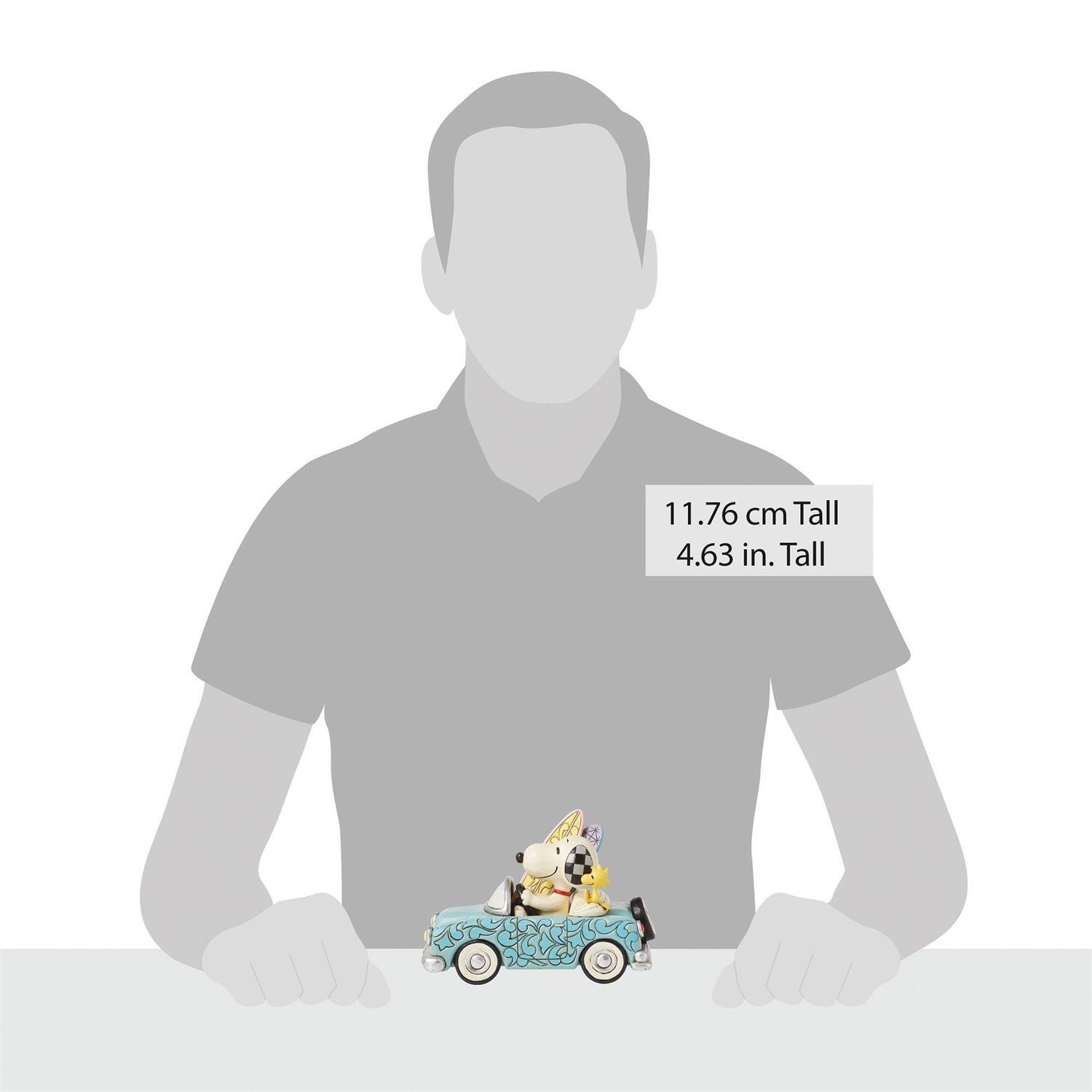 Snoopy a le volant dans cette délicieuse création de Jim Shore, lui et Woodstock se dirigent vers la plage dans une décapotable accrocheuse remplie de planches de surf. Le couple se prépare à attraper quelques vagues dans la voiture groovy aux motifs de détails enchanteurs.