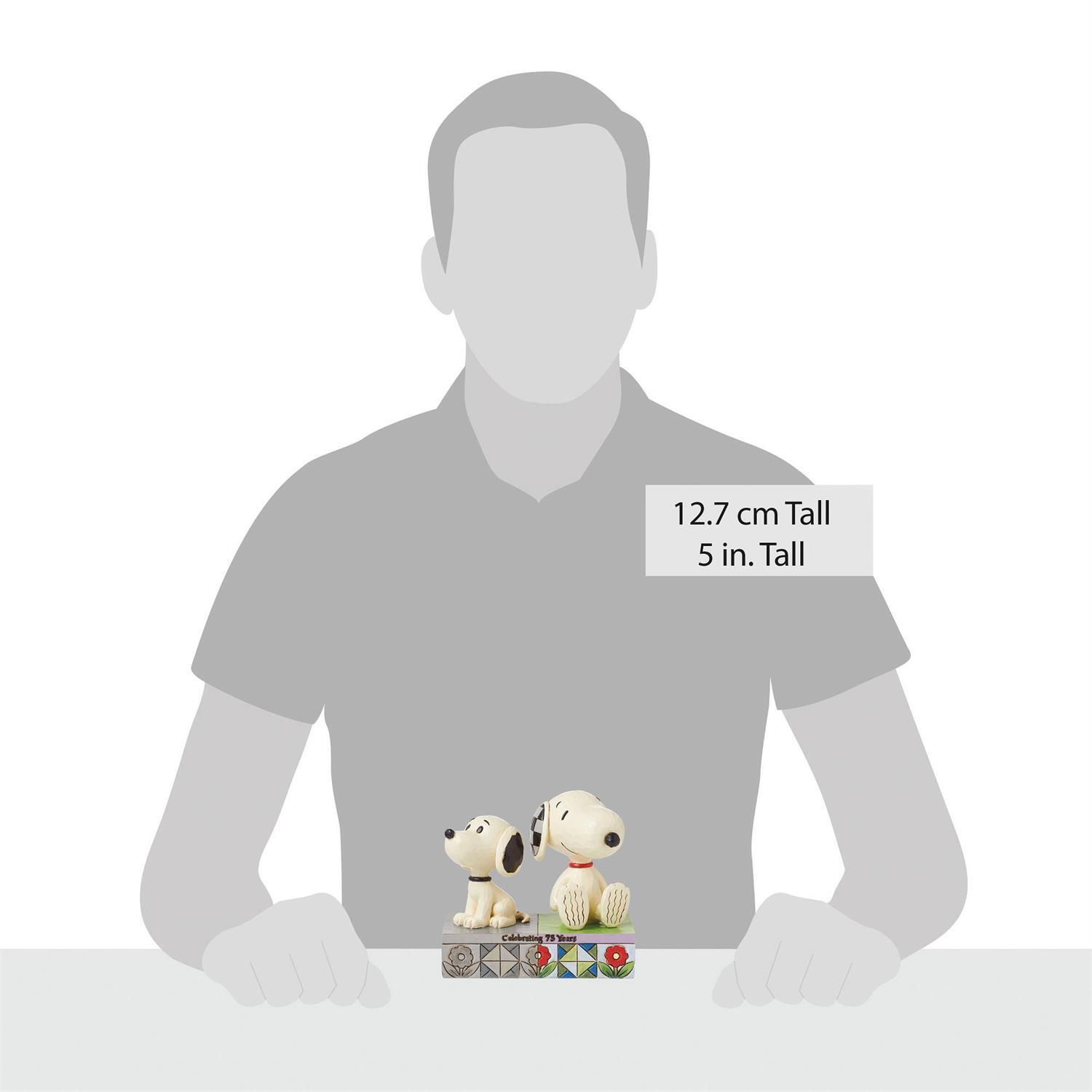 Ce buste enchanteur de Jim Shore présente deux itérations intemporelles de Snoopy debout dos à dos. Un Snoopy incarne le style classique des années 1950, tandis que l'autre représente le Snoopy revisité d'aujourd'hui, mettant en valeur l'évolution du personnage adoré.