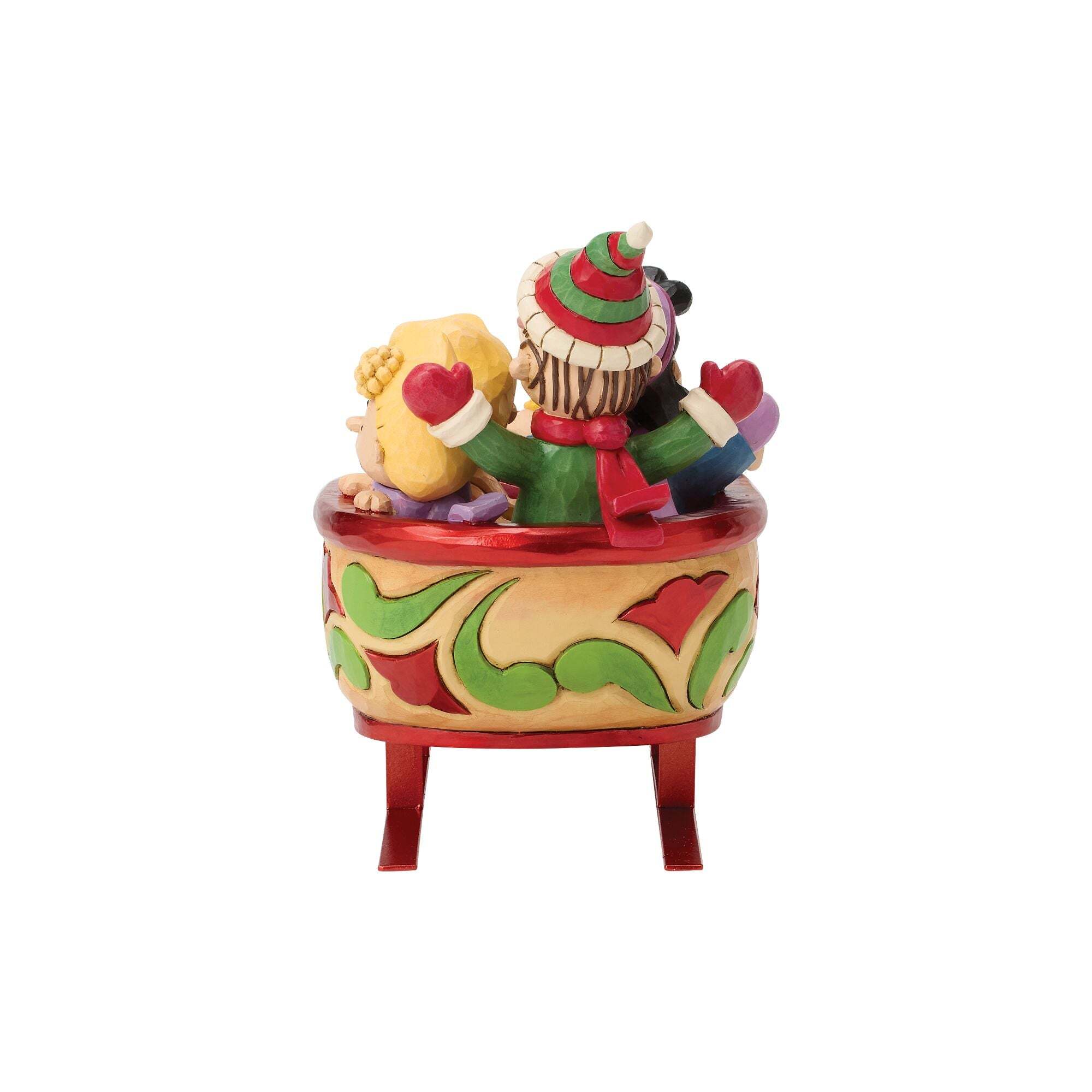 Charlie Brown, Snoopy et leurs amis les plus attachants font une promenade festive en traîneau dans cette scène détaillée de Jim Shore. Avec ses accents d'art populaire et son esprit de Noël traditionnel, c'est un rappel chaleureux de la convivialité de Noël.