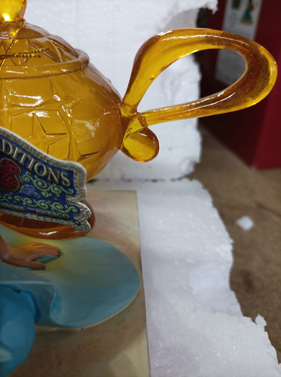- Le manche de la lampe du génie était cassé, il a été recollé