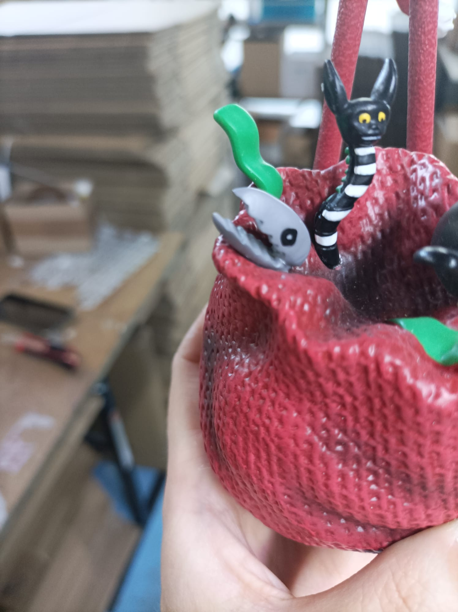 - La petite tête grise dans la hotte du Père Noël a été recollée.