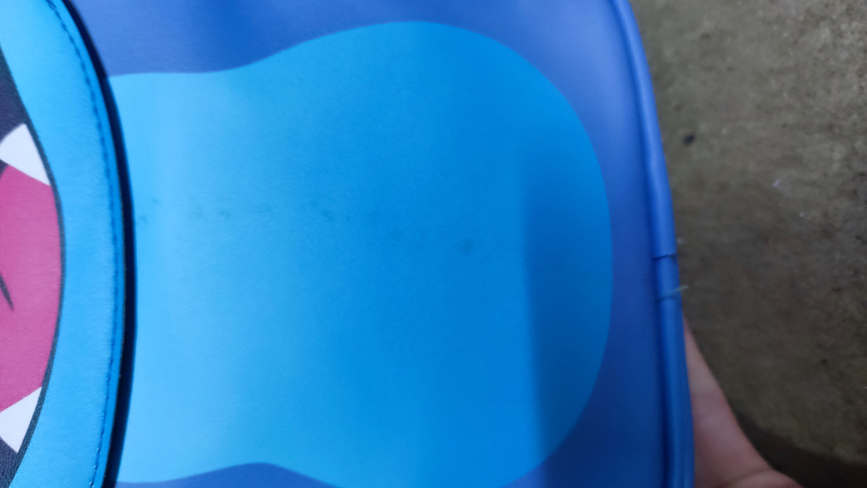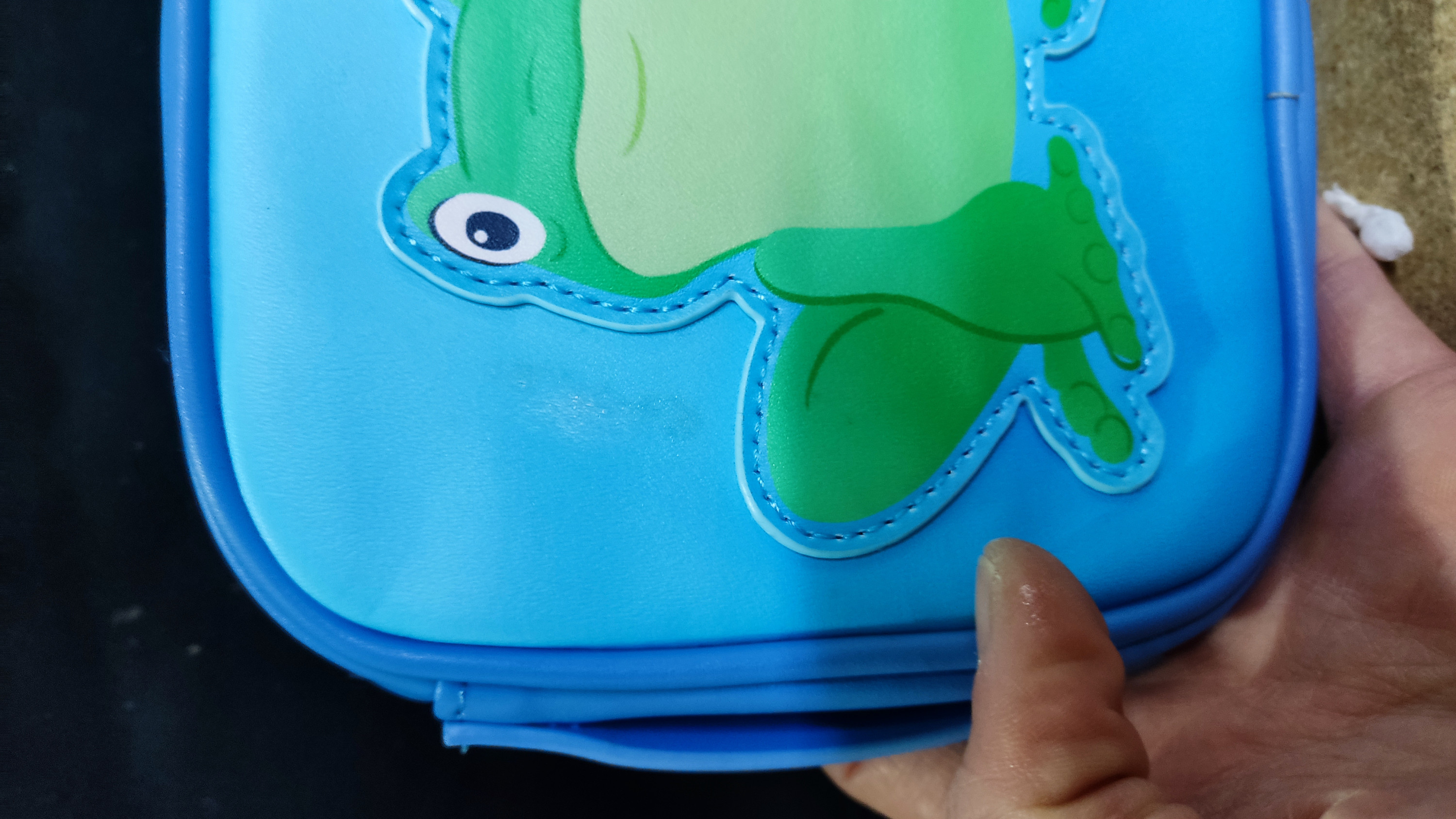 - Tache de colle sur le côté grenouille de la pochette réversible