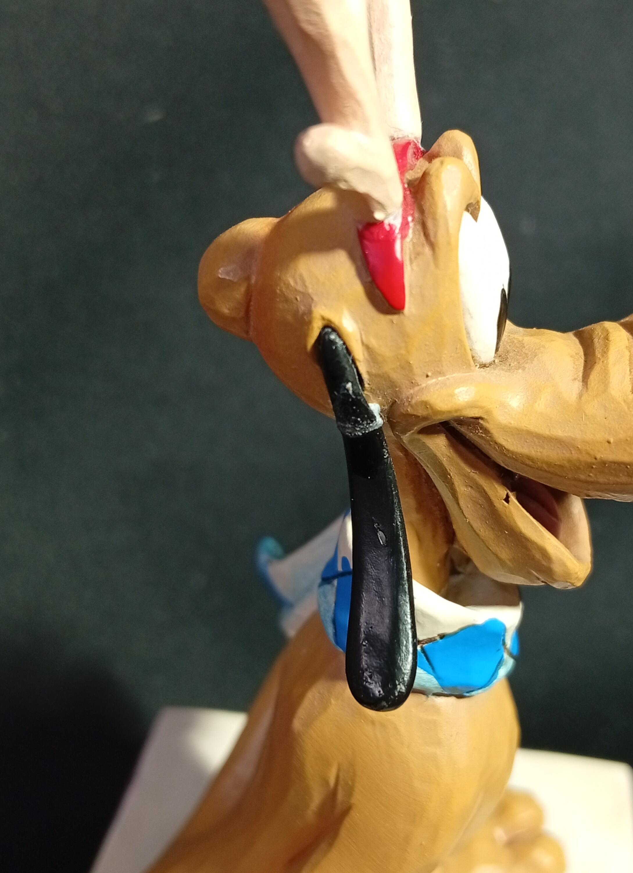 - L'oreille droite a été recollée.
