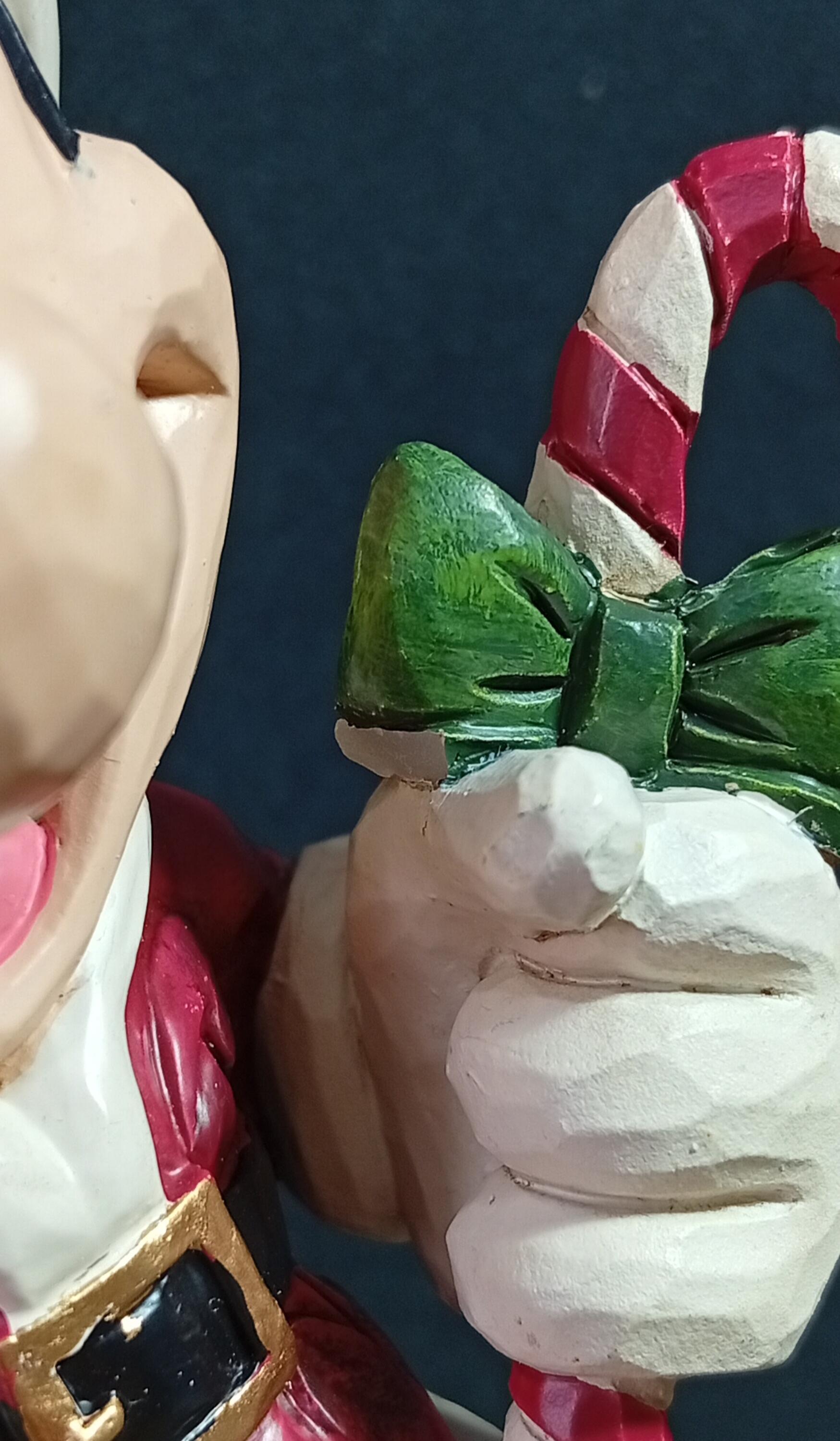 - Minnie’s candy cane has been re-glued and has a small chip missing.