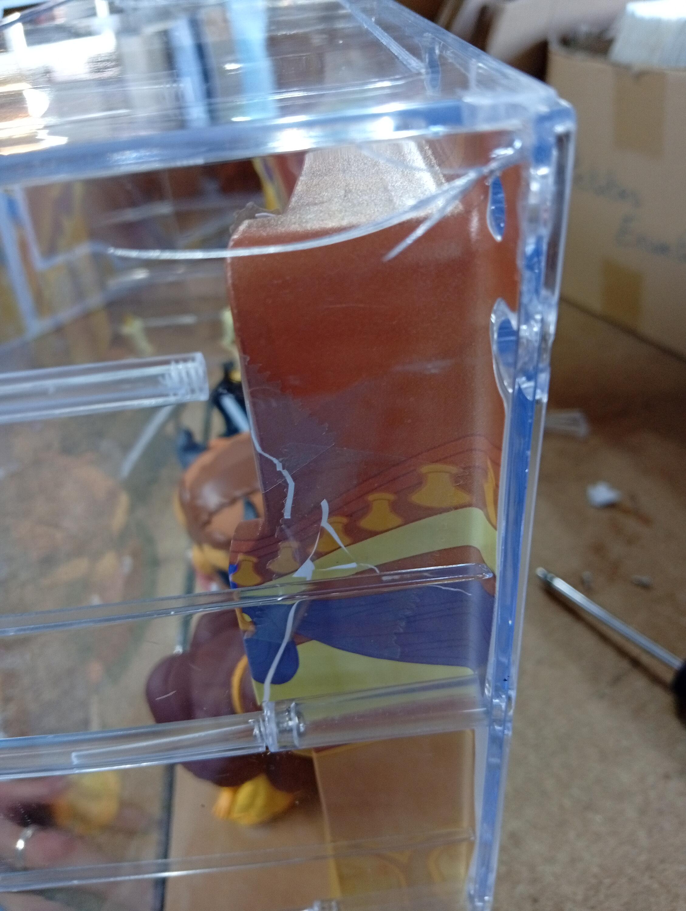 - Le décor de fond a subi quelques dommages et a été réparé.