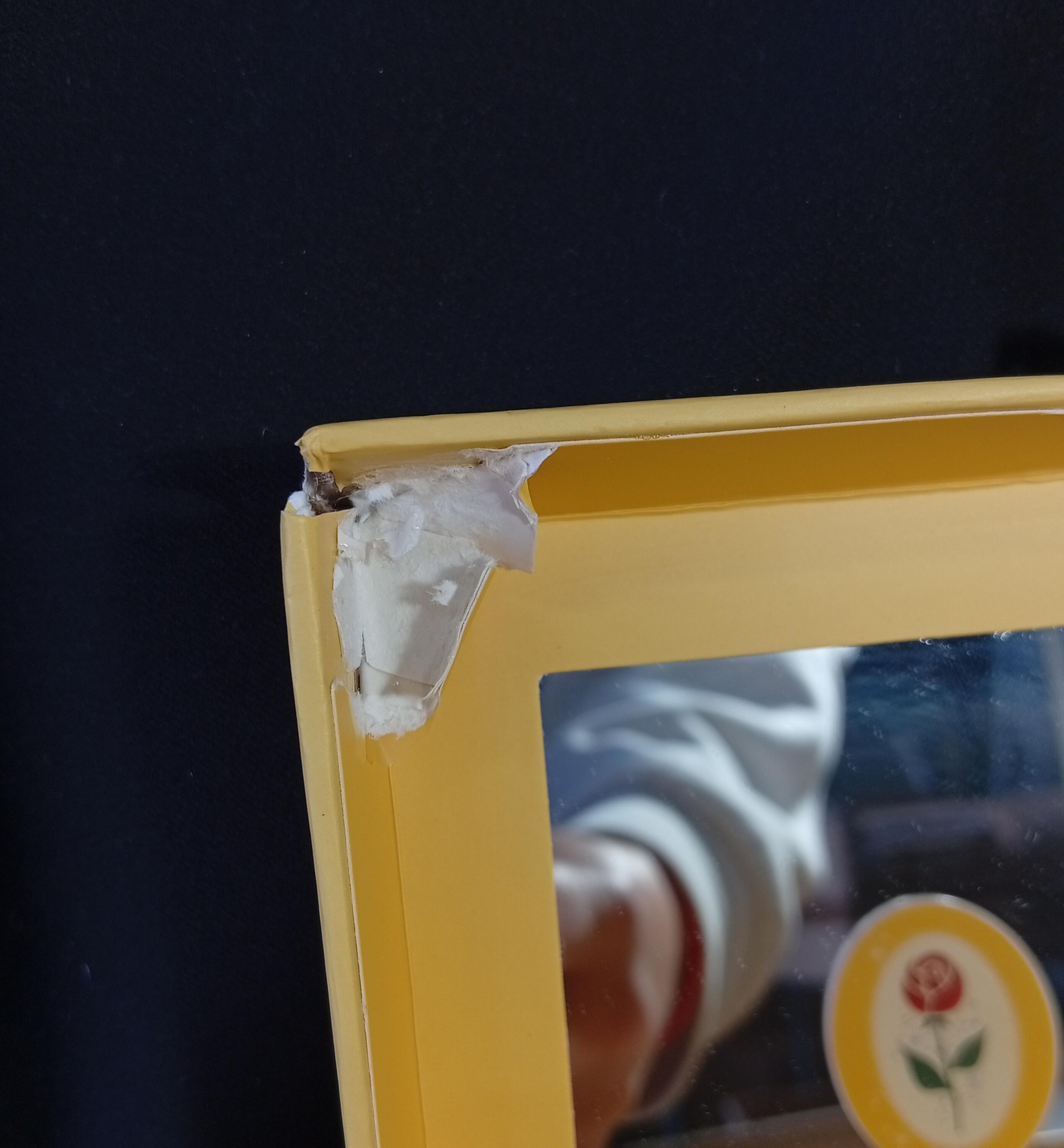 - Le coin supérieur gauche est déchiré.