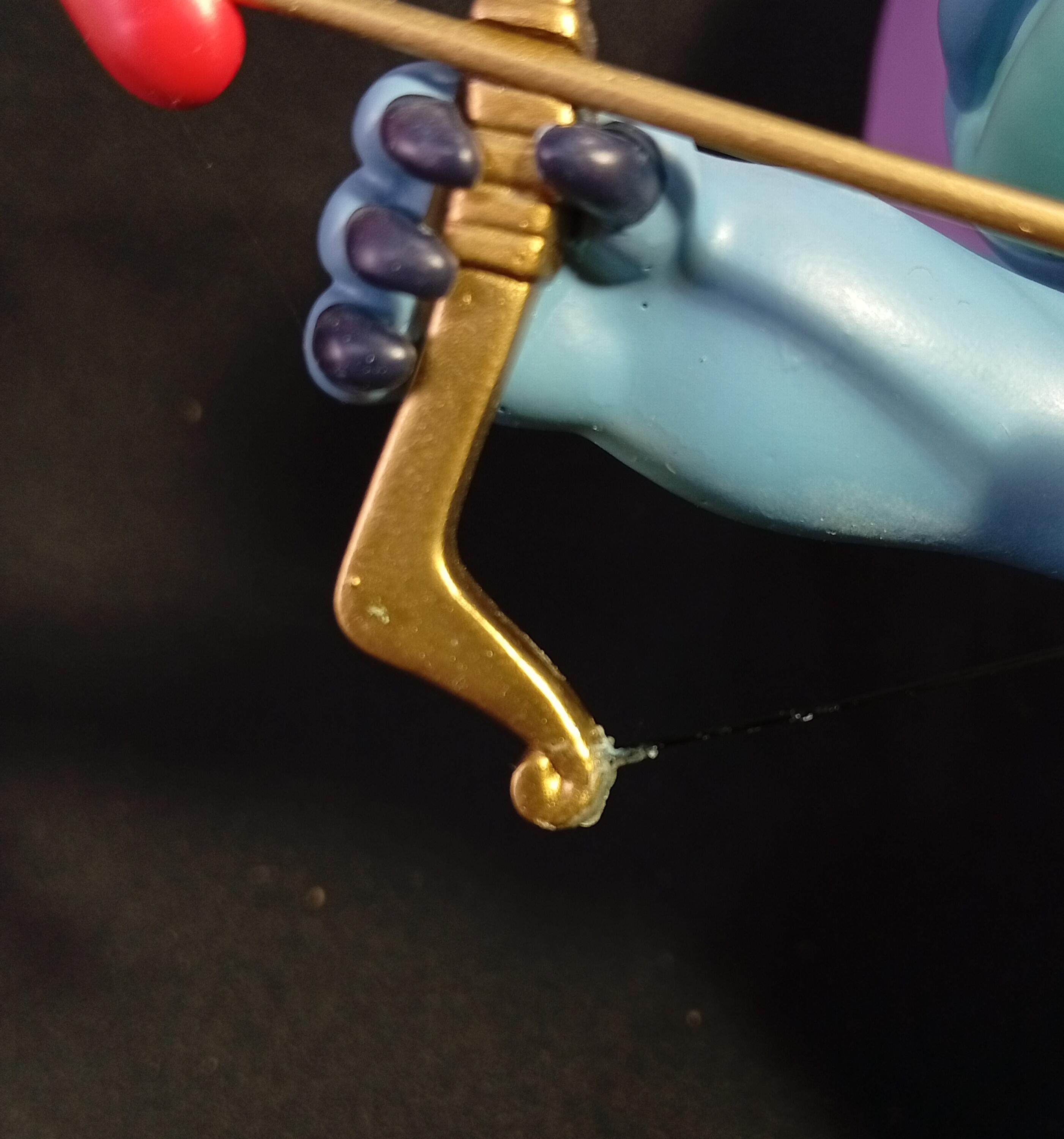 - La corde de l'archet a été recollée.