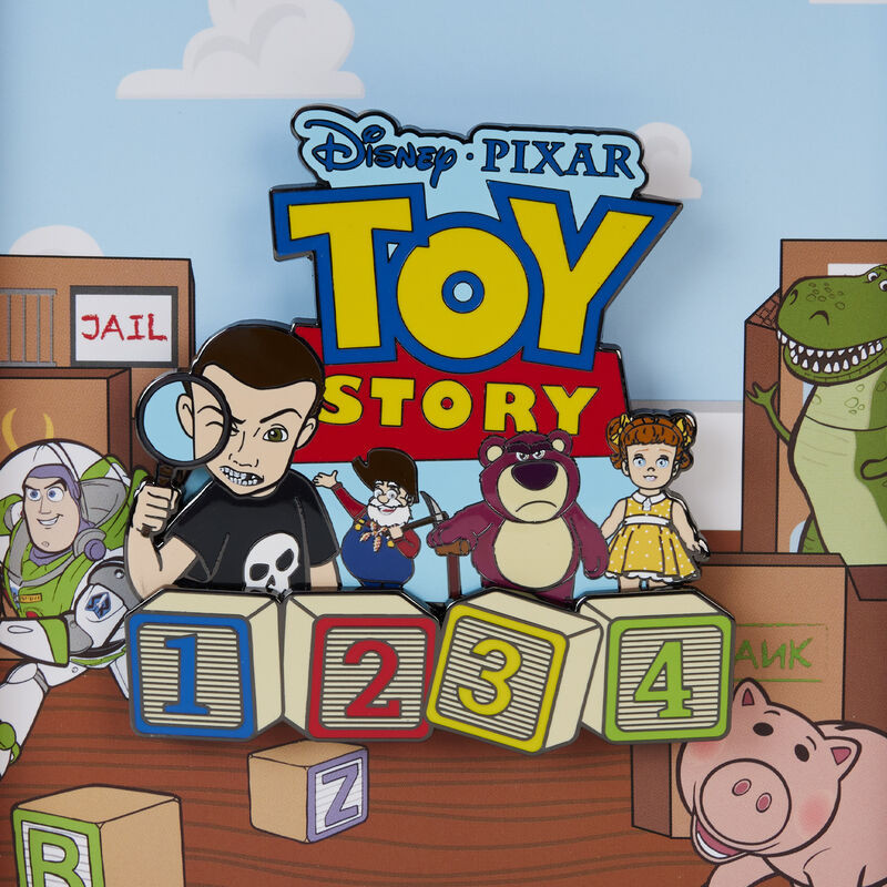 Rassemblez vos amis, c'est l'heure de jouer ! La pin's de collection coulissante Loungefly Toy Story Baddies de 7,5 cm rend hommage à nos méchants préférés de la franchise Disney-Pixar.