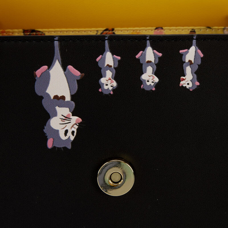 Sous les pétales dorés de la fleur, Bambi, Panpan et Miss Bunny sortent d'un champ en fleurs. Soulevez le rabat pour révéler une famille cachée d'opossums qui traînent ! Des carreaux noirs et blancs recouvrent les côtés du sac et se poursuivent sur la bandoulière au-dessus, où des appliques de tournesol encadrent chaque extrémité. Retournez le sac pour voir Flower se cacher dans un champ de tournesols. Ce sac bandoulière constitue un ajout radieux à n'importe quelle tenue et est parfait pour les fans de Disney qui cherchent à garder leurs personnages préférés près de eux.