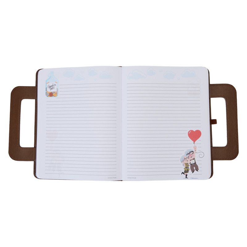 Le journal Loungefly Disney-Pixar Up 15e anniversaire Adventure Book Lunchbox est fabriqué en cuir végétalien. (polyuréthane). Les fonctionnalités supplémentaires incluent des notes autocollantes et des détails imprimés.
