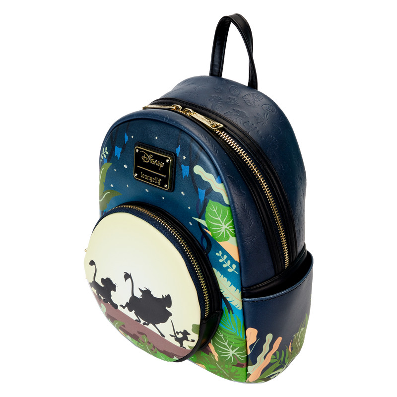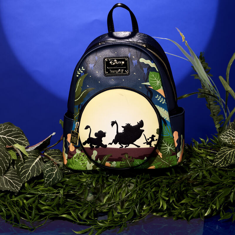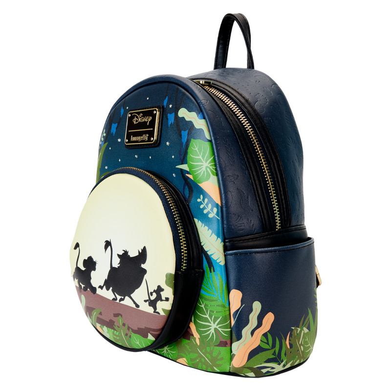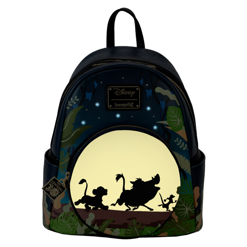 Détendez-vous et laissez libre cours à votre style de vie sans souci ! Le mini sac à dos Loungefly Lion King 30e anniversaire Hakuna Matata Silhouette apporte un nouveau look décontracté à votre ambiance quotidienne. Sur le devant, une pleine lune se lève sur la poche avant zippée du sac alors que Timon, Pumbaa et Simba marchent sur une bûche. Au-dessus, une toile de fond feuillue encadre un ciel nocturne étoilé. Éteignez les lumières pour voir la lune briller dans le noir tandis que les étoiles s'illuminent grâce aux fonctions d'éclairage LED ! Une breloque zippée en émail 30e anniversaire accompagne la poche zippée, et des imprimés de feuilles en creux rejoignent une végétation luxuriante sur les côtés du sac. Au dos, le portrait de Simba apparaît avec le logo anniversaire. Que vous souhaitiez vous détendre ou explorer la savane, ce mini sac à dos vous gardera au frais et détendu.