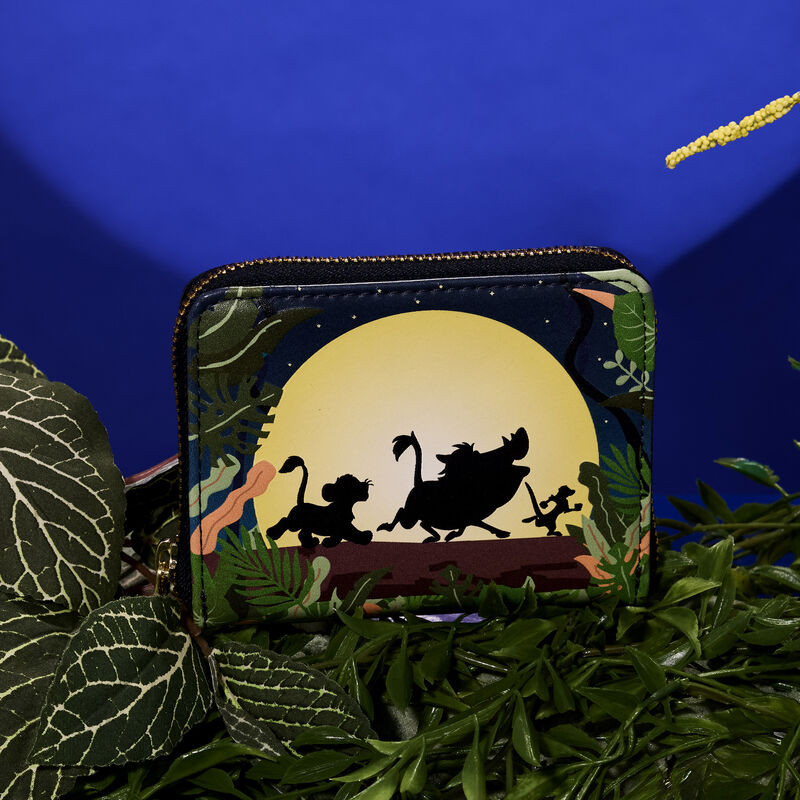Détendez-vous et laissez libre cours à votre style de vie sans souci ! Le portefeuille à Zip éclair Loungefly Lion King 30e anniversaire Hakuna Matata Silhouette apporte un nouveau look décontracté à votre ambiance quotidienne. Sur le devant, une pleine lune se lève alors que Timon, Pumbaa et Simba marchent sur une bûche. Éteignez les lumières pour voir la lune briller dans le noir ! La végétation luxuriante se poursuit au dos du portefeuille et une fenêtre découpée en forme de Simba accompagne quatre emplacements pour cartes à l'intérieur. Que vous preniez les choses en douceur ou que vous exploriez la savane, cet accessoire vous gardera cool et détendu.