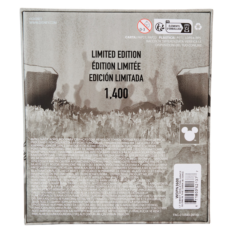 Caractéristiques : épingle en émail, matériel en bronze, détails des pièces coulissantes, détails phosphorescents, gravure de la couronne Funko/ Loungefly (arrière), édition limitée à 1 400 pièces, boîte de collection en vitrine