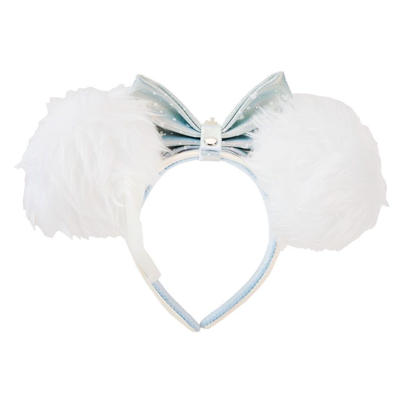 Caractéristiques du bandeau : cuir végétalien (polyuréthane), nœud 3D amovible, fausse fourrure, détails découpés, nacrés et irisés, logo Loungefly brodé (côté du bandeau)