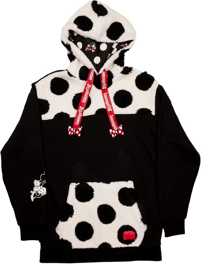 Restez confortable et stylé avec le sweat à capuche Sherpa Loungefly Disney Minnie Rocks the Dots. Orné des emblématiques cordons de Minnie Mouse et d'un motif à pois noirs et blancs, ce sweat à capuche allie mode et confort. Parfait pour tous les fans de Disney, ce sweat à capuche est un incontournable pour les journées fraîches.