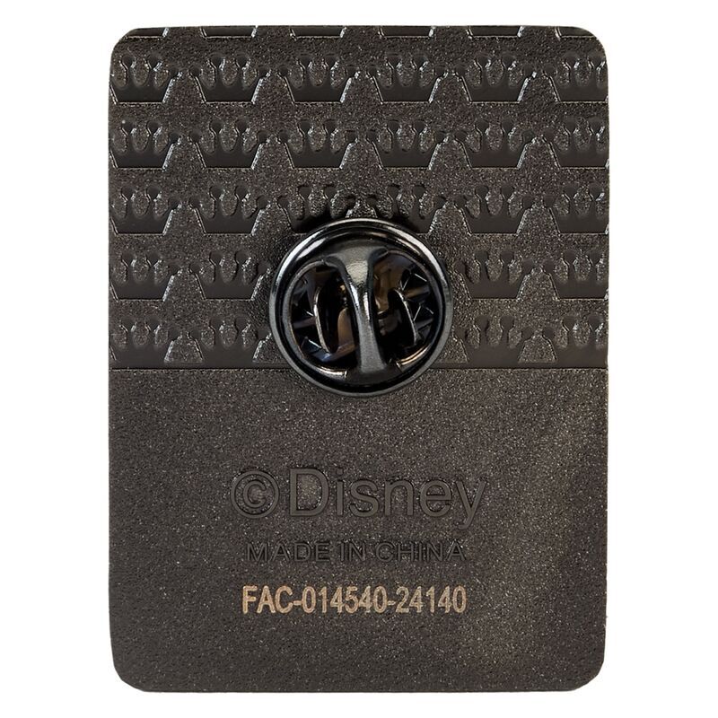 Taille : 3,75 cm. Broche en émail, boîte mystère, ferrures argentées brillantes, détails nacrés et phosphorescents (broche de poursuite), couronne Funko/ Loungefly en relief (arrière).