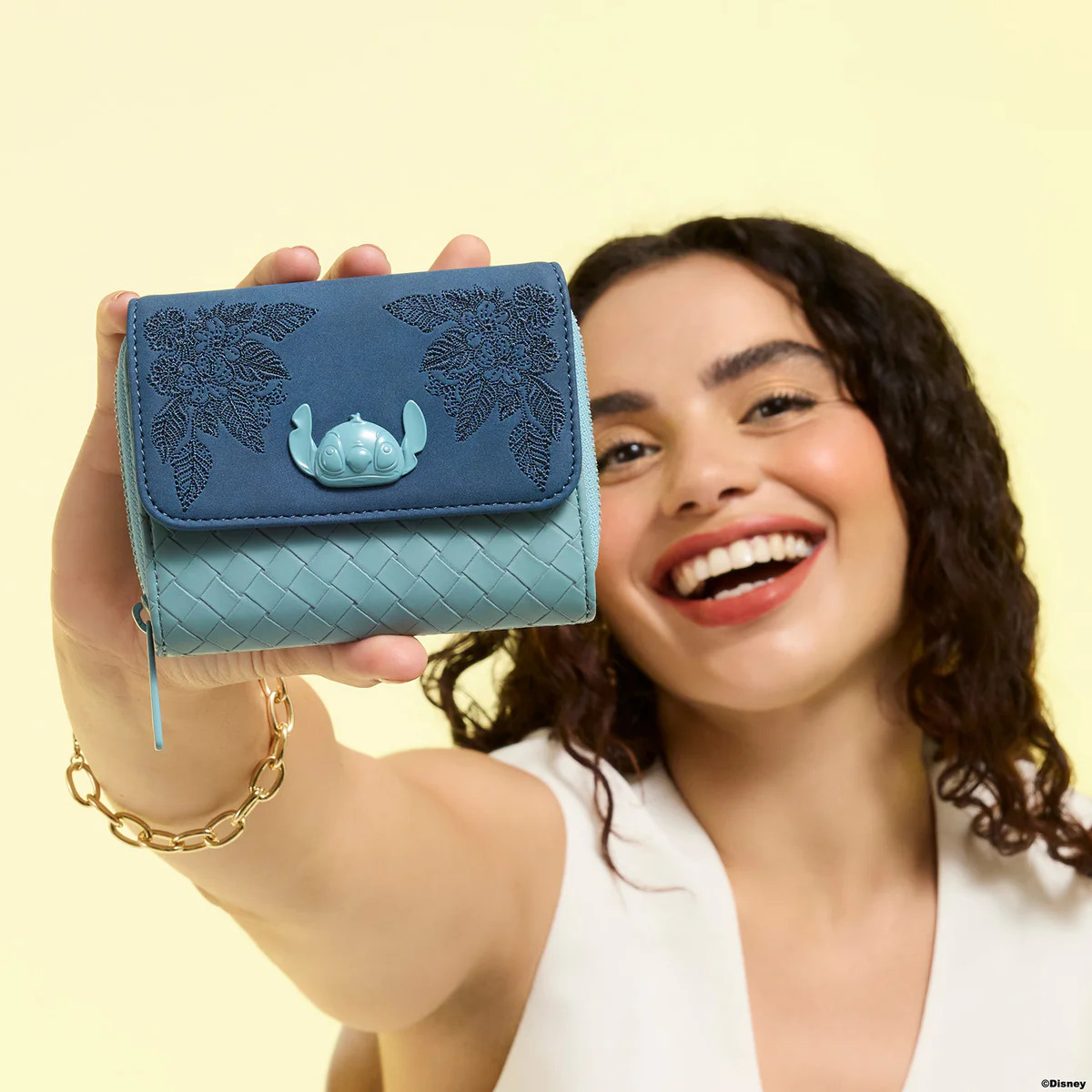 Ce portefeuille est orné d'une breloque en métal moulé représentant Stitch sur le devant, avec des détails floraux brodés autour. À l'intérieur, vous trouverez de nombreux emplacements pour vos cartes et votre argent, et la fente transparente pour carte d'identité est ornée de la silhouette de Stitch ! C'est TROP MIGNON !