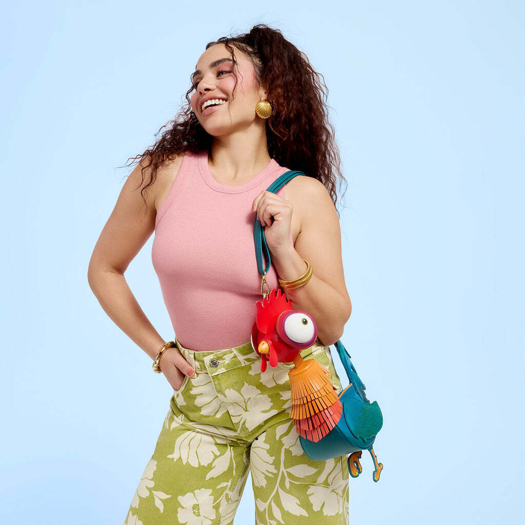 On sait, c'est tellement emblématique, et c'est un incontournable ! Ce sac prend la forme de Hei Hei de Moana de Disney. De véritables franges donnent une sensation 3D à ses « plumes ».