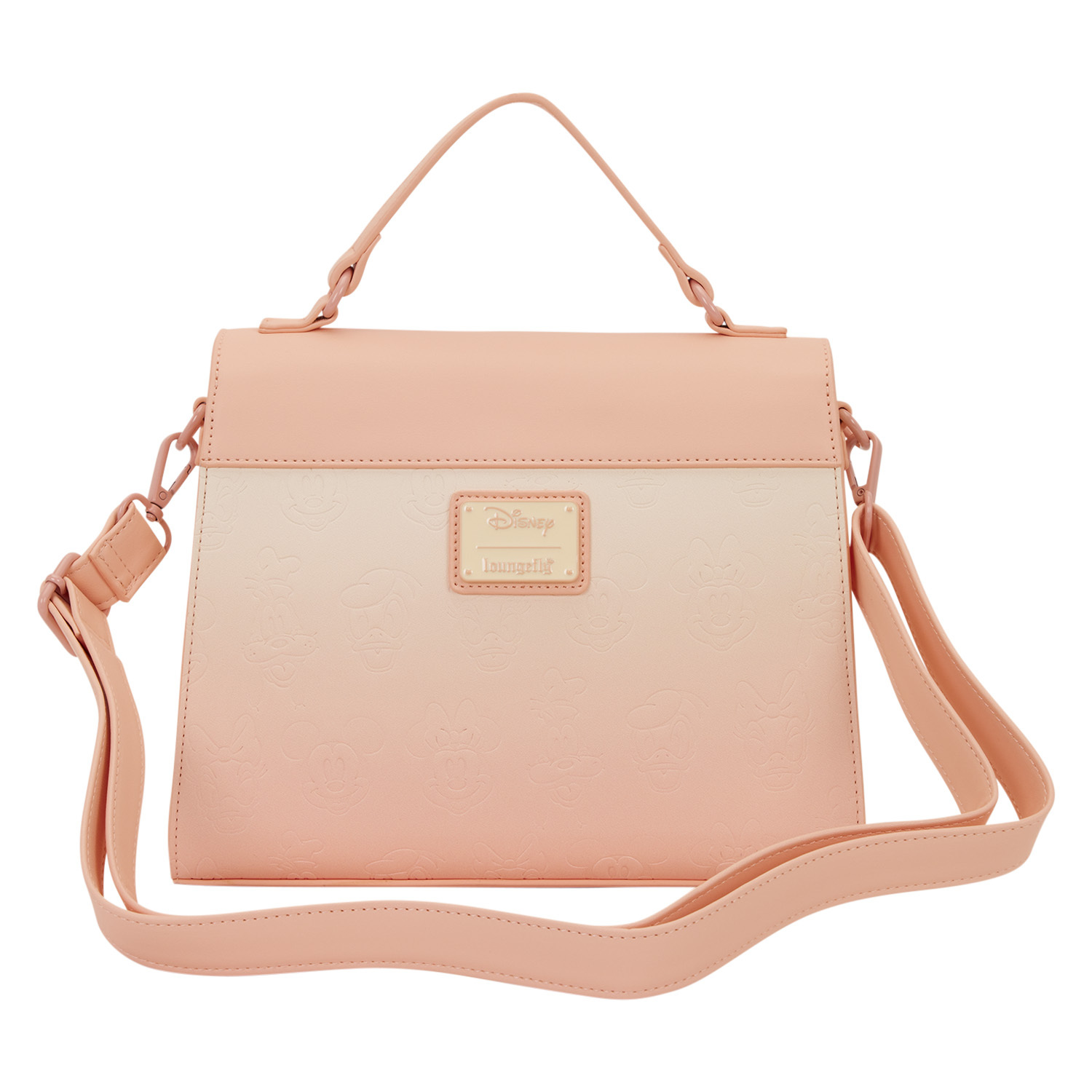 Ce sac bandoulière arbore un dégradé rose orné de détails en relief représentant Mickey Mouse et ses amis ! Un rivet en métal moulé et peint à Mickey Mouse orne le rabat supérieur. Portez ce sac par la poignée supérieure ou à l'épaule grâce à sa bandoulière !