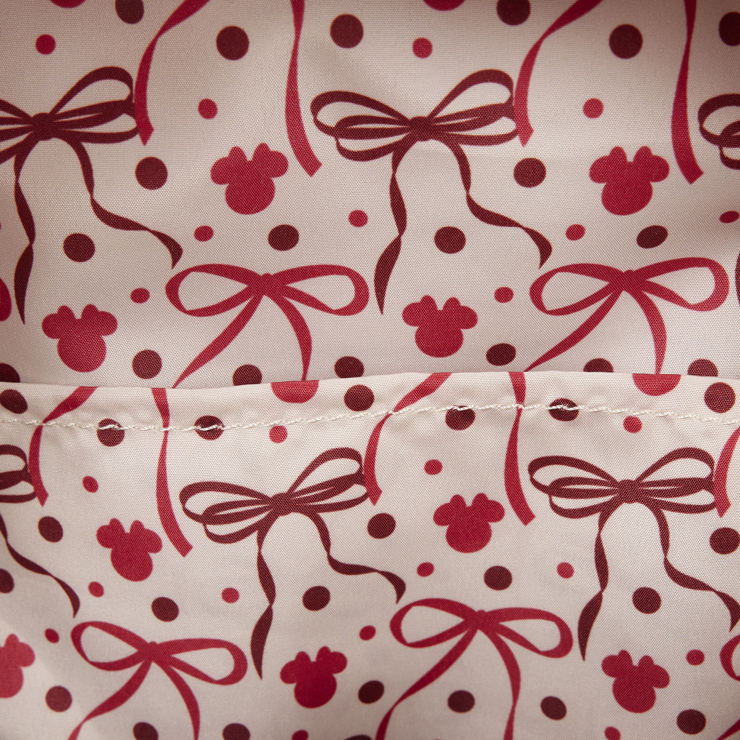 Ce mini sac à dos est crème et rouge. La poche avant est ornée de pois en relief. Le reste du sac est décoré de silhouettes de Minnie Mouse. Des rubans de satin ajoutent une touche de mignonnerie aux poches latérales et aux oreilles en 3D. Un nœud rouge à pois blancs orne également l'entre-oreilles ! Vous trouverez également des détails en satin sur les bretelles.