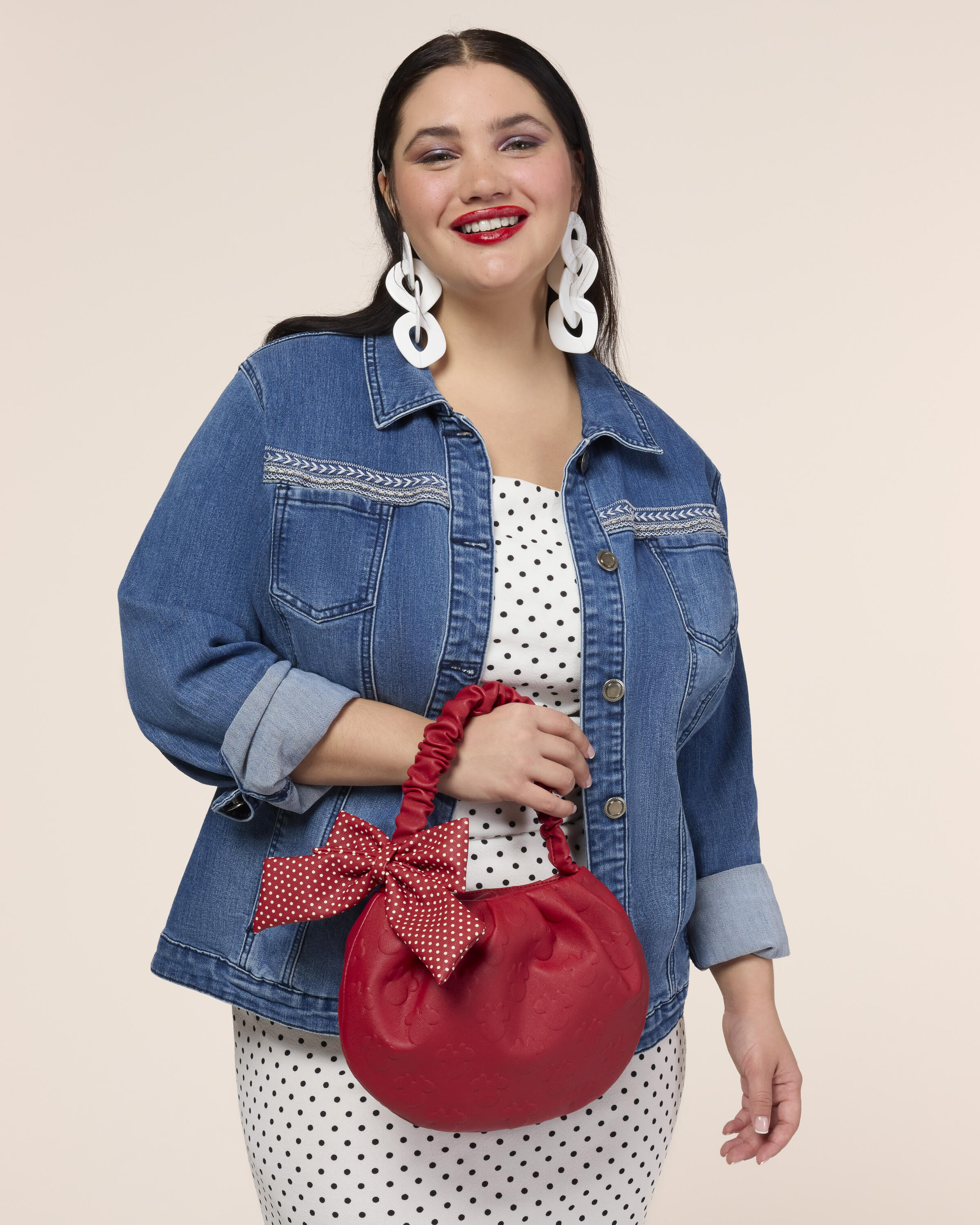 Ce sac est absolument adorable et inspiré de Minnie Mouse de Disney ! La silhouette de Minnie Mouse est imprimée en relief sur tout le sac ! La poignée a une texture chouchou et un joli nœud à pois y est attaché ! Cet accessoire adorable apportera une touche de magie Disney à votre quotidien !