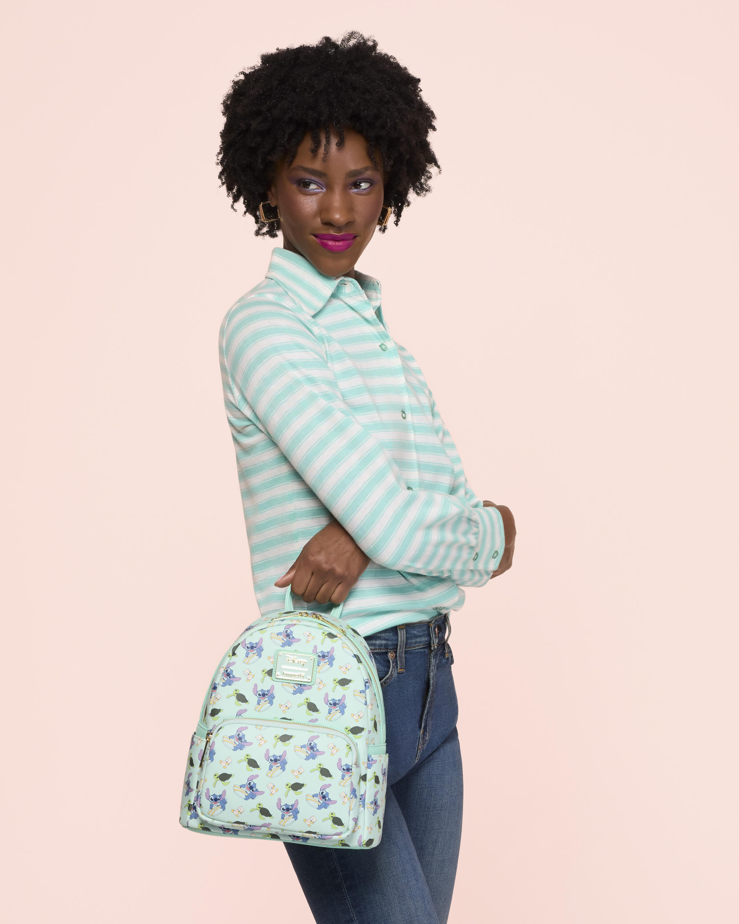 Ce mini sac à dos est orné d'un imprimé intégral représentant Stitch sur une planche de surf, des canetons et des tortues de mer ! Regardez de plus près : vous découvrirez des appliqués de canetons sur les bretelles ! C'est un sac super mignon qui affiche votre amour pour Lilo et Stitch et est prêt pour toutes les aventures !